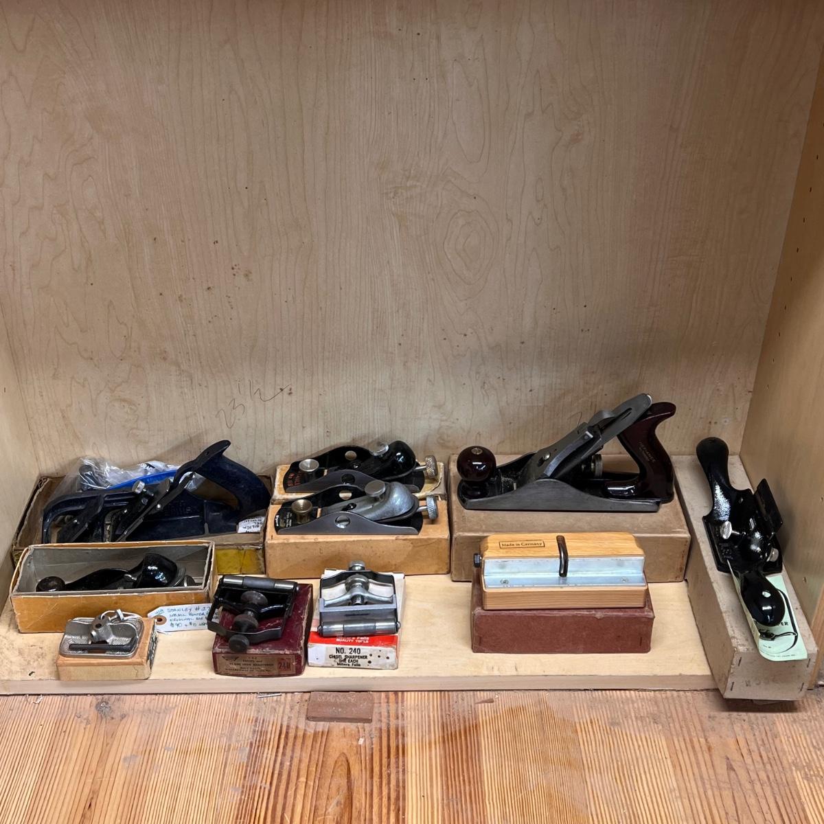 This kit includes several tools from Ulmia, Stanley, and Miller Falls. There are multiple planes, cabinet scrapers, and a chisel sharpener. Shipping available.