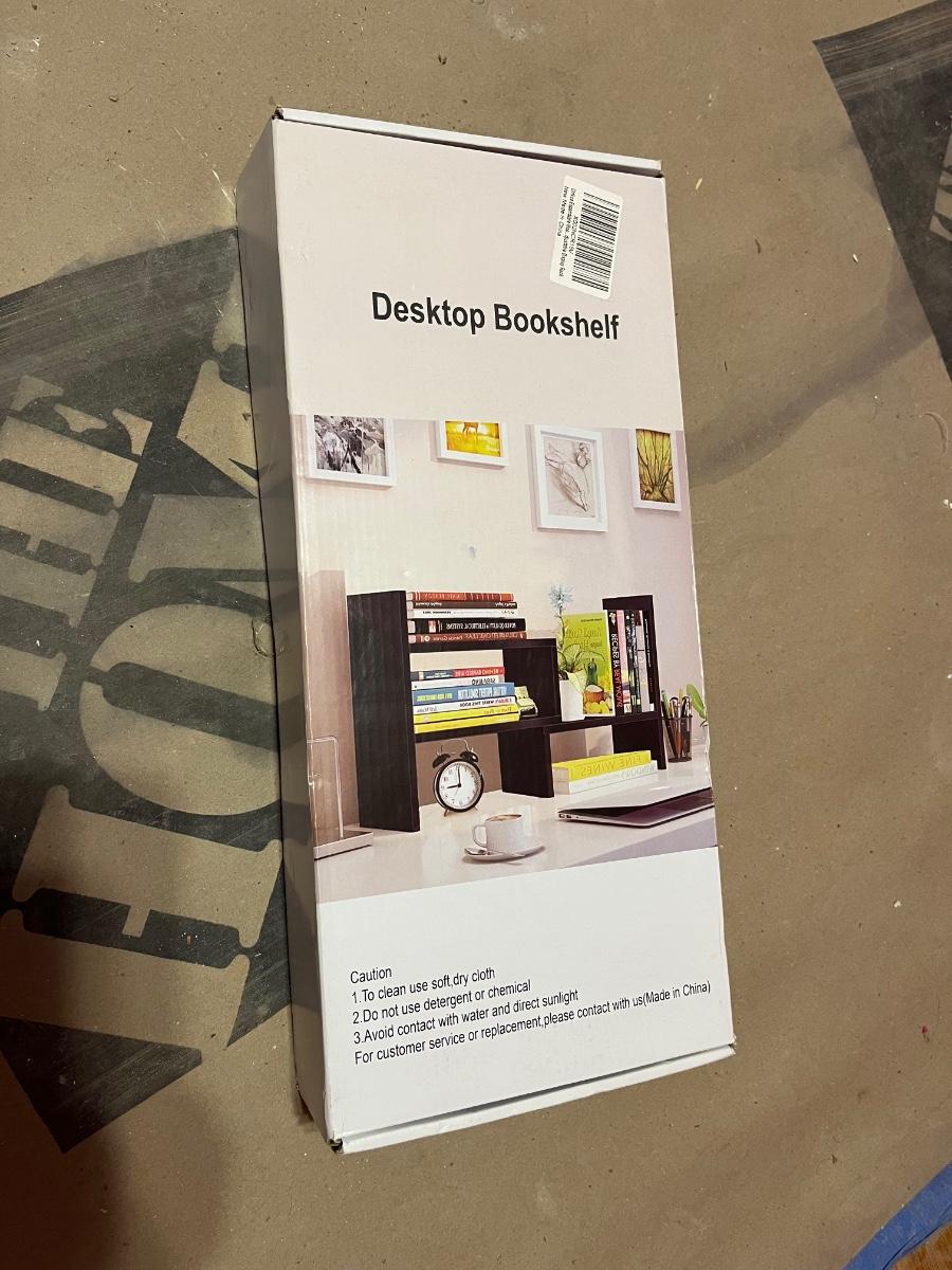 Brand new and never opened. It is a multi-tier organizer suitable for storing books, office supplies, or plants.