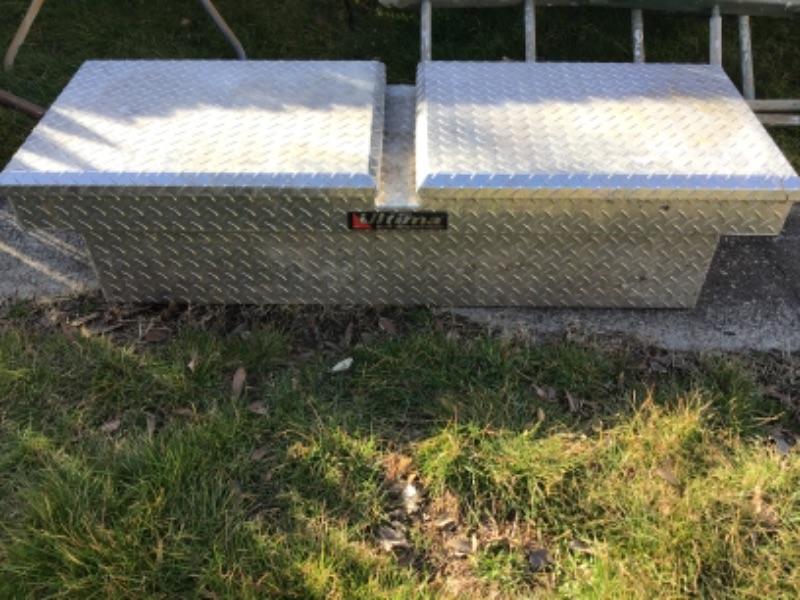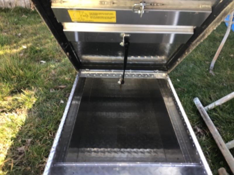 In great condition with a key. Ultima storage stainless for a back of a truck. 60 inches wide, to fit in a 51 inch wide gap. 21 inch depth.