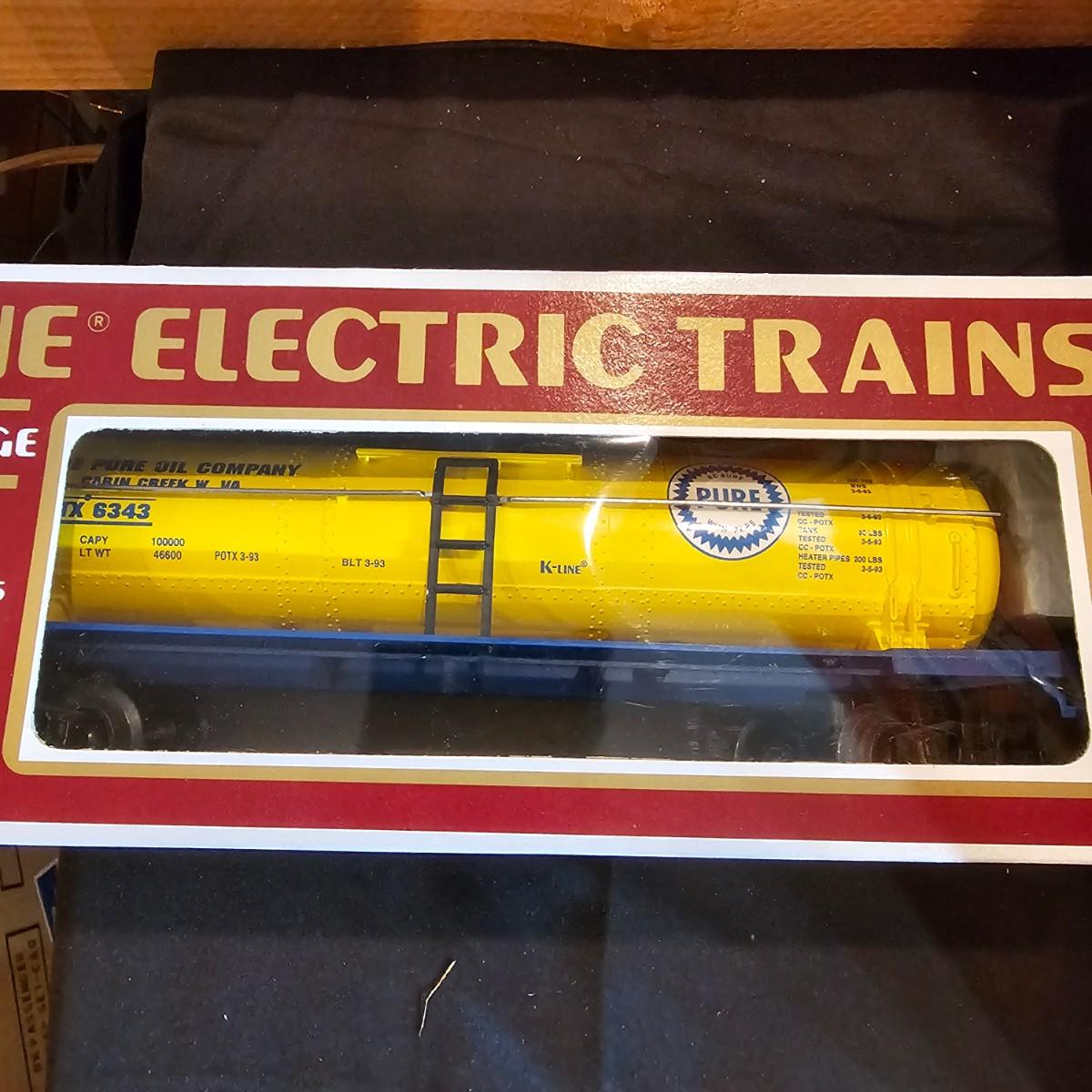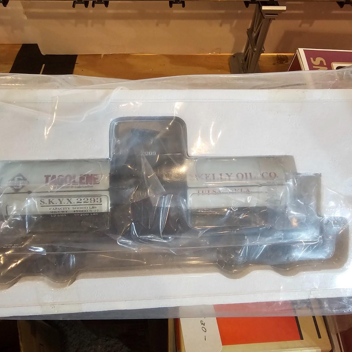 Start a refinery. Transport just about anything liquid in this huge assortment of tank cars from everywhere. Fuel, water, carbide, anything you can think of that travels by rail. There are three dozen cars here with some duplication, most all in original boxes. Gulf, Texaco, Pure, Sunoco, all the great names that traverse our country. Many items appear to be new in box, others have seen many miles on the rails. Boxes the same fate. Cars range in length from 9" to 12" long. See photos for details.. Please note that any price tag seen on an item was not put there by Sterling Transitions and does not reflect the current value of the item. Any train tracks shown in photos are not included but are available in another lot in this sale.