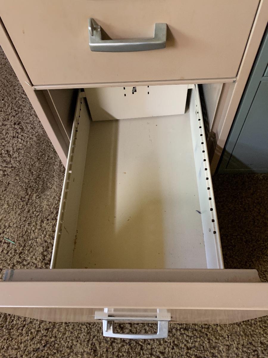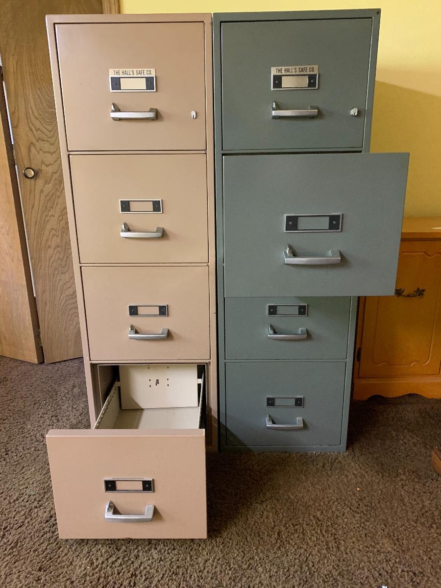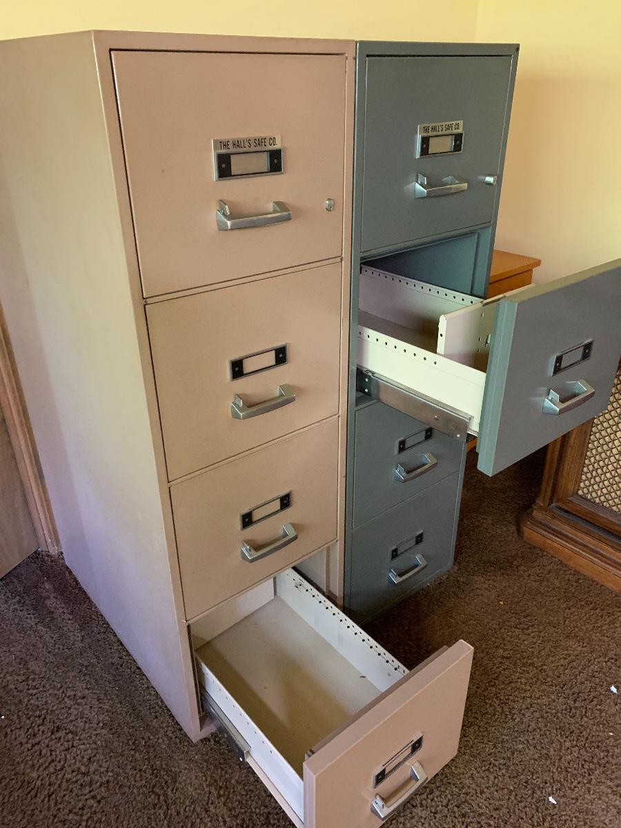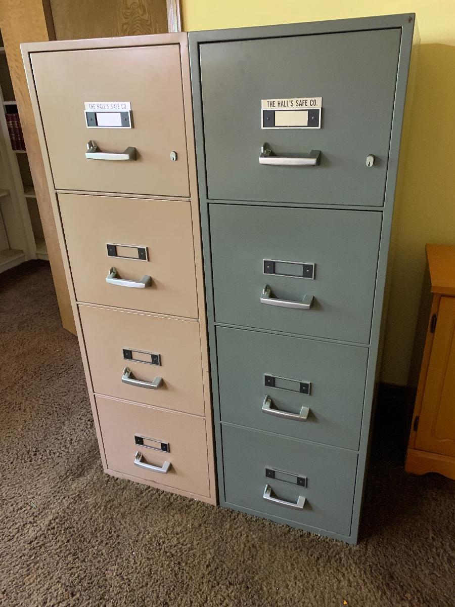 Lot FIRE PROOF HEAVY SAFE #1 (Tan color on the left)