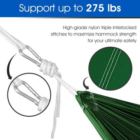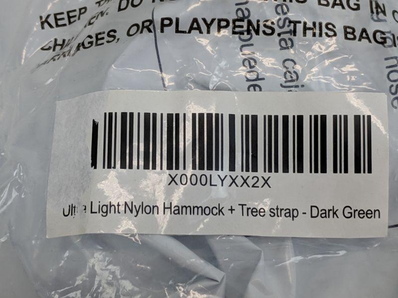 Ultra Light Nylon Hammock + Tree Strap, Dark Green - New