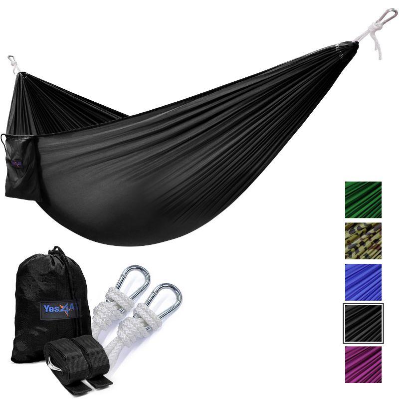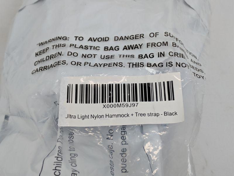 Ultra Light Nylon Hammock + Tree Strap, Black - New