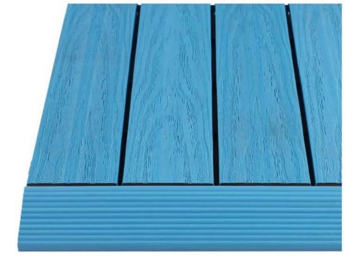 UltraShield Naturale 1 ft. x 1 ft. quick deck outdoor composite deck tiles in Caribbean Blue and matching 1/6 ft. x 1 ft. quick deck composite deck tile Straight Fascia.