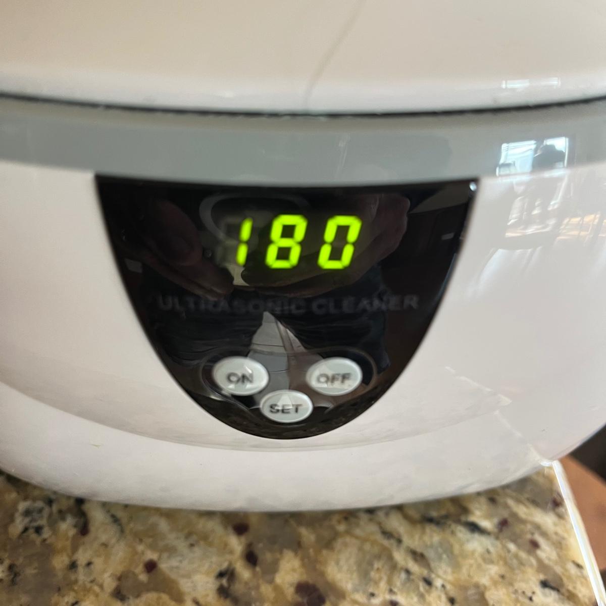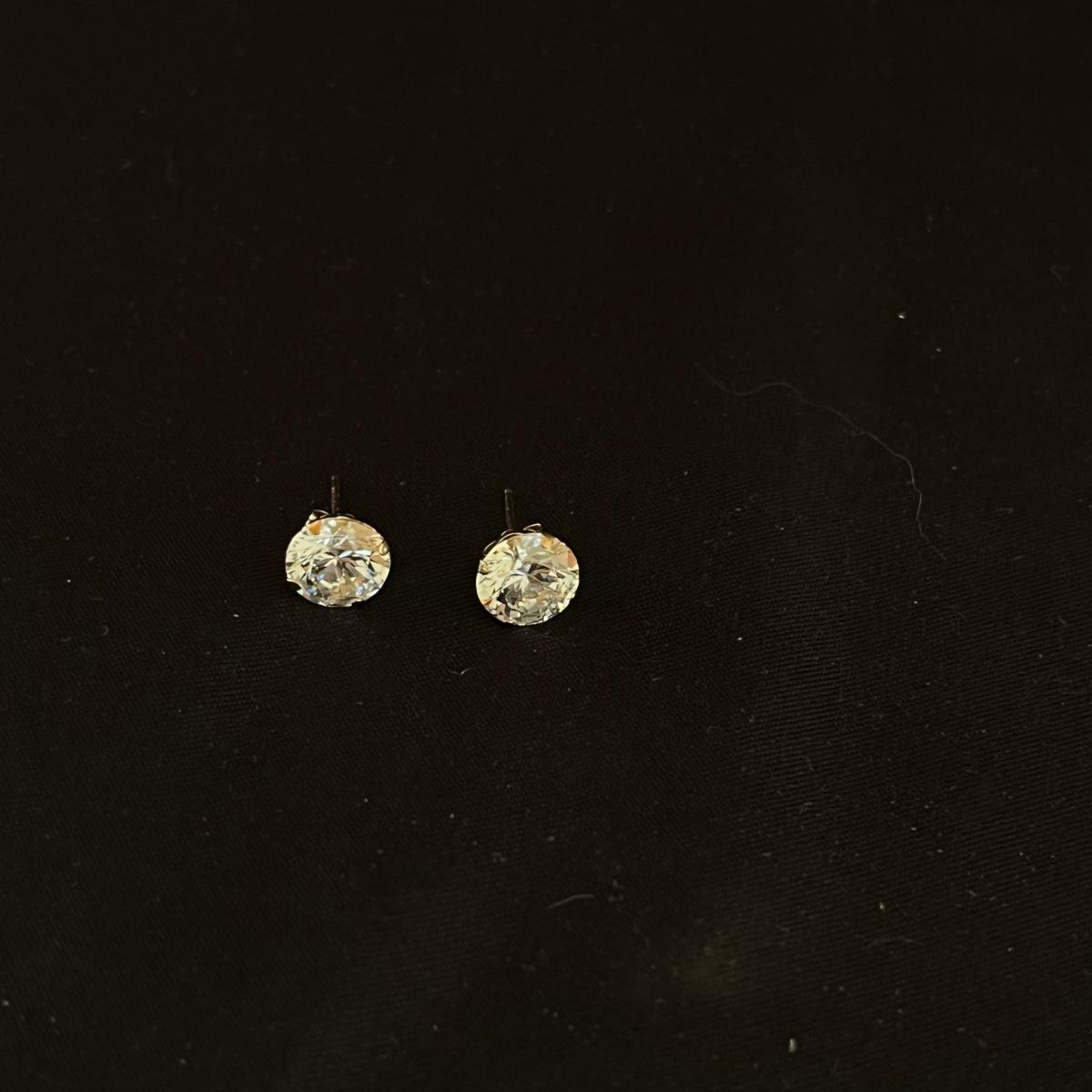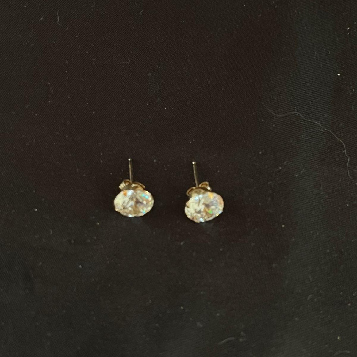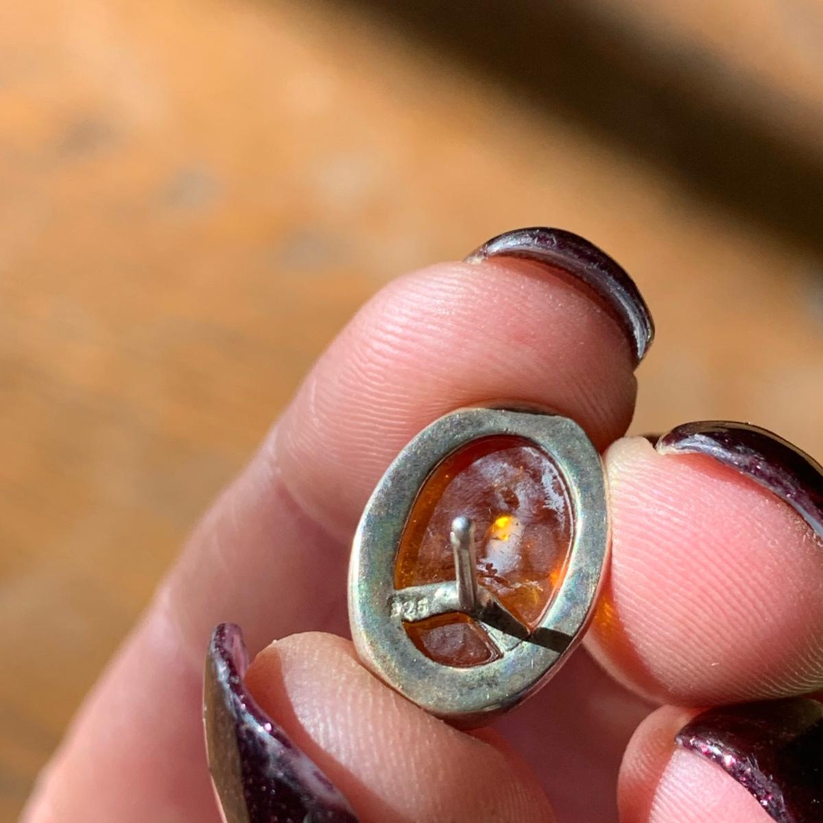 Lot includes an ultrasonic jewelry cleaner that powered on when tested, one pair of faux diamond stud earrings, and a pair of amber post earrings that are marked 925. Cleaner measures 5.5” x 8” x 5.5”.