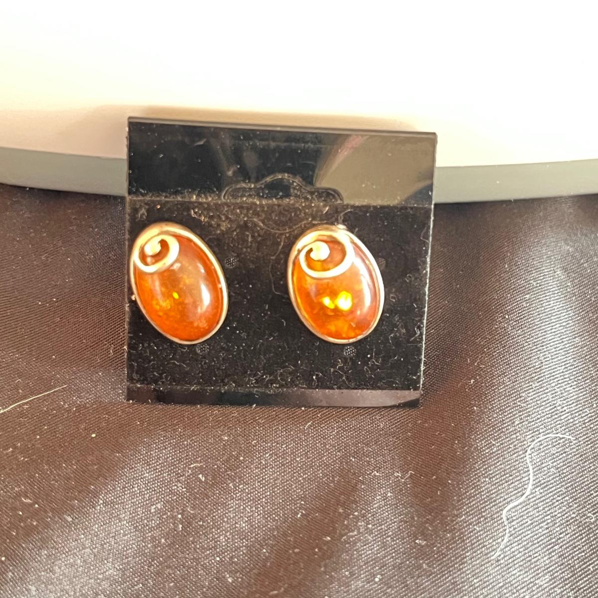 Sterling Silver Amber Earrings & Ultrasonic Jewelry Cleaner (DR-MG)