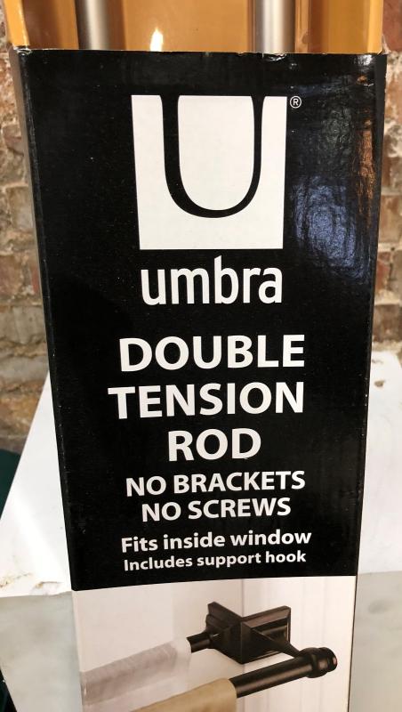 Umbra Double Tension Rod...No brackets..No screws..Fits inside window..includes support hook...Adjusts from 54-90"....Contemporary style...New in box