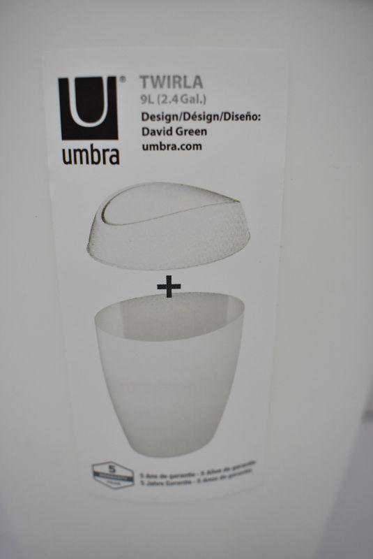 Umbra Twirla Trash Can, 2 Gallon (9L) Capacity White - New