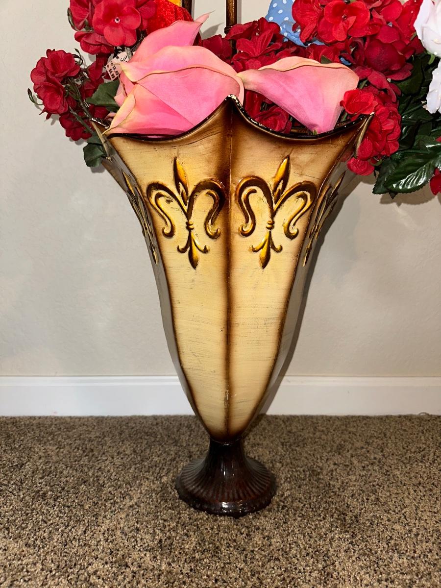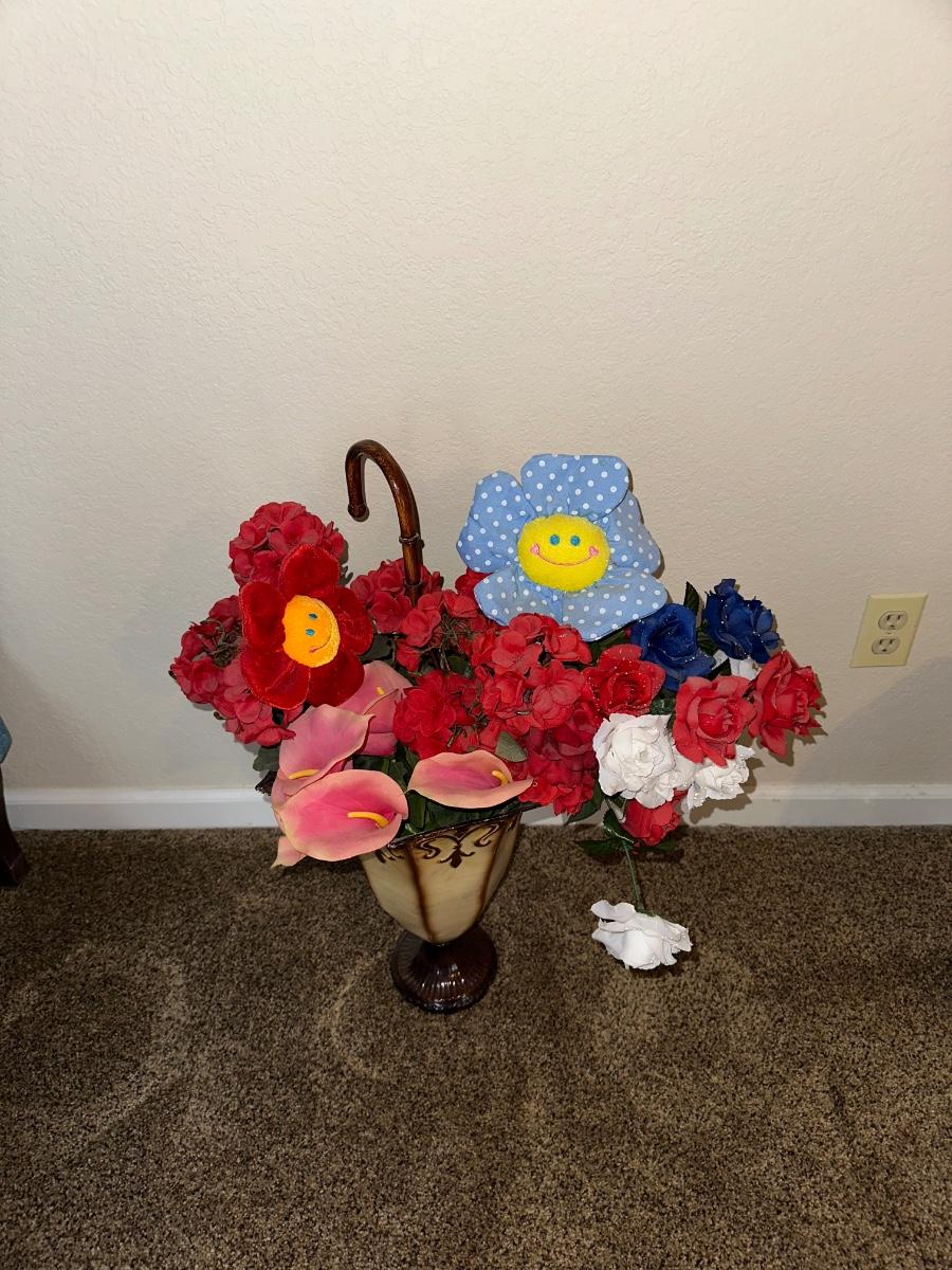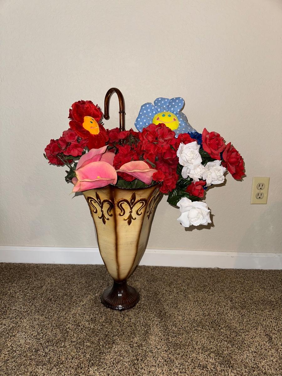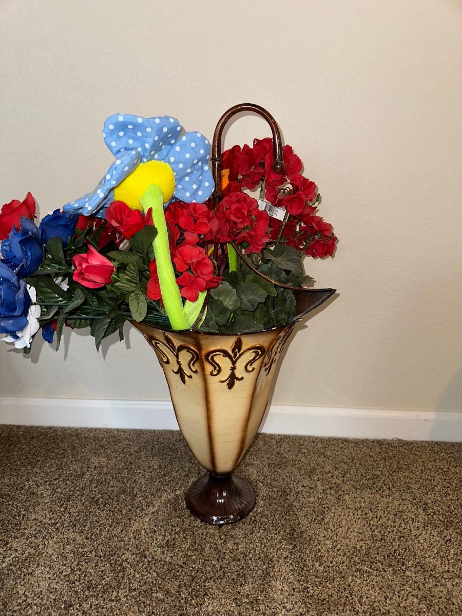 UMBRELLA SHAPED FLOWER VASE WITH FAUX FLOWERS