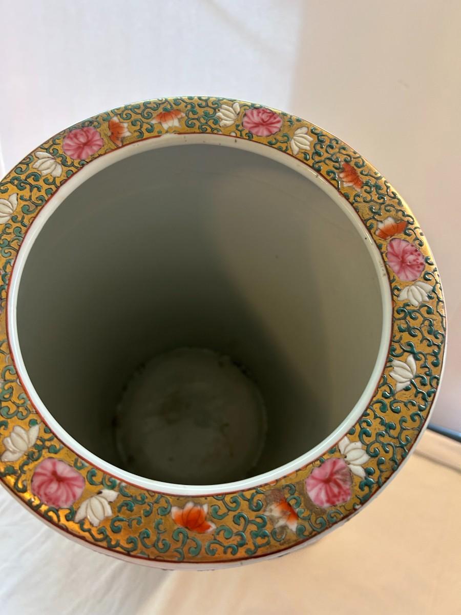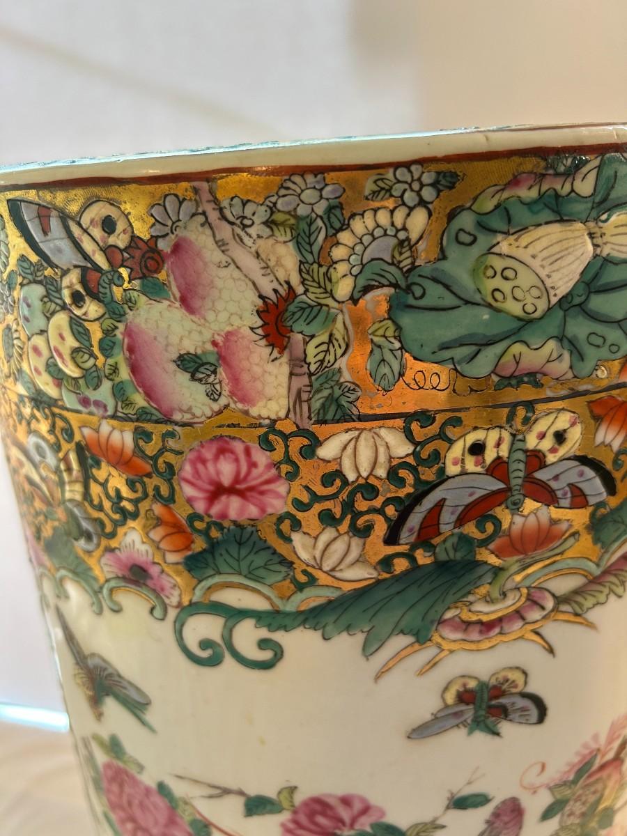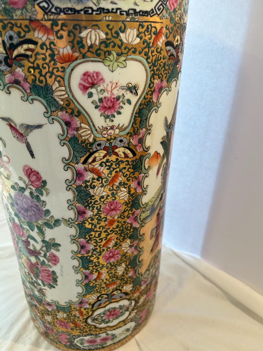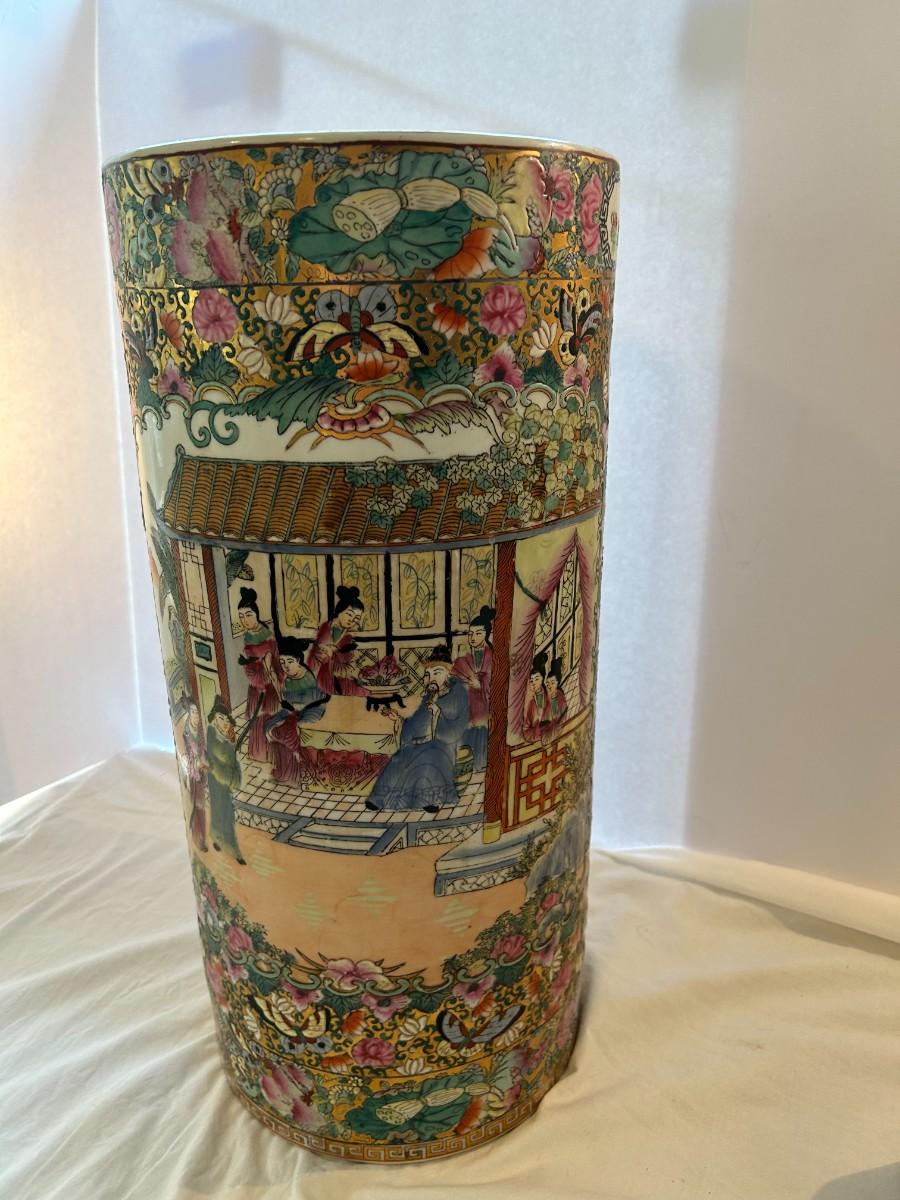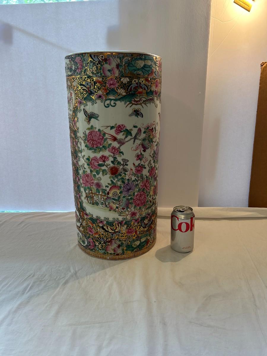 Chinese umbrella stand made of porcelain, or an extra-large vase to house a bountiful floral arrangement.
