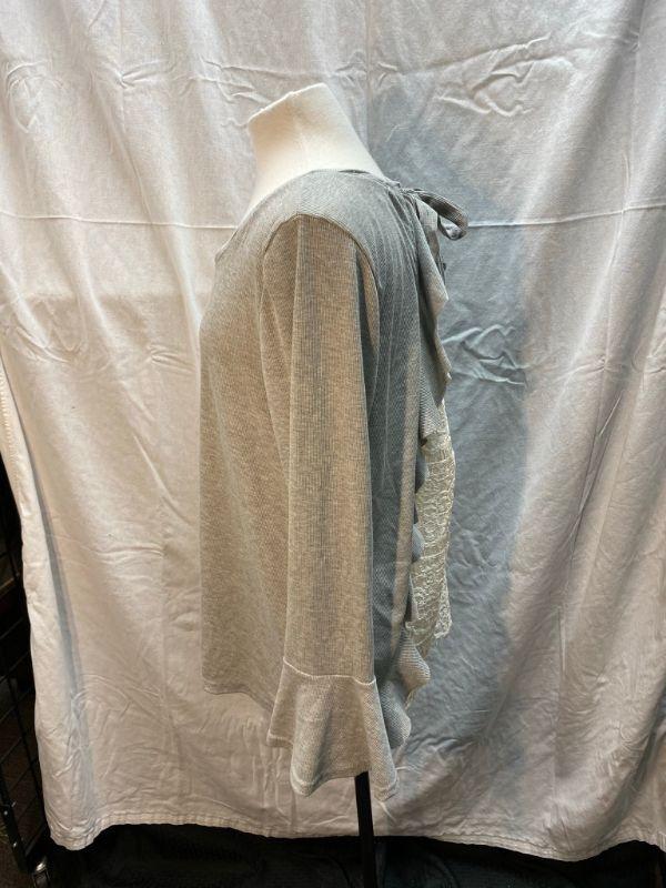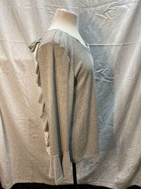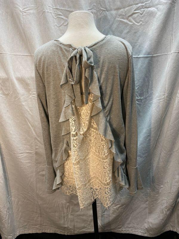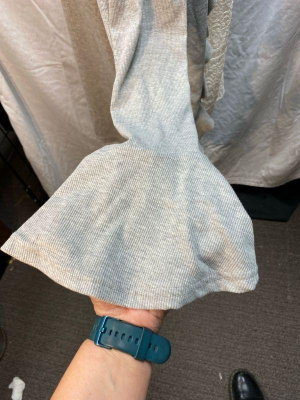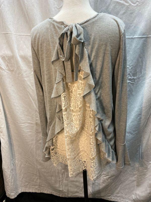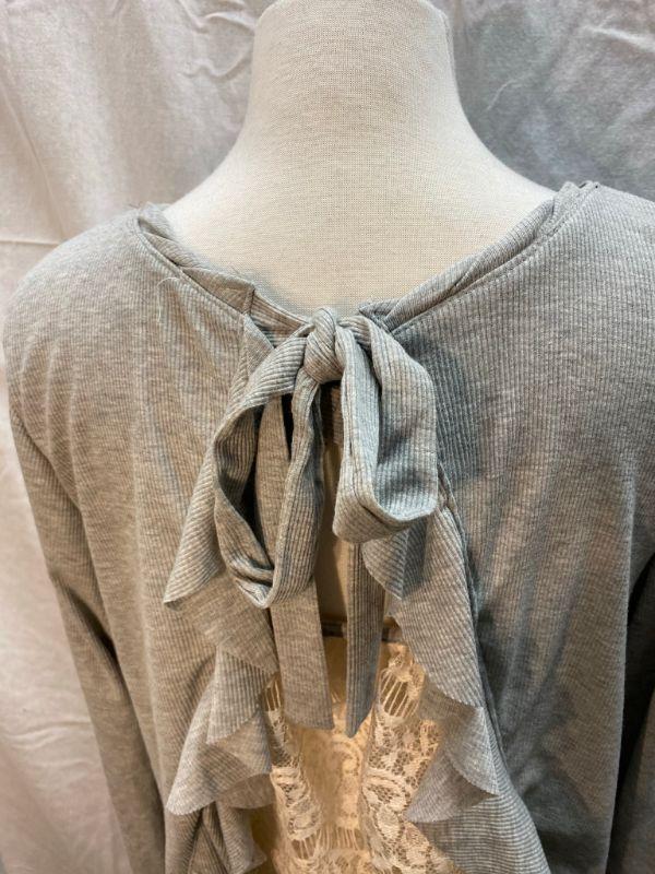 Umgee Light Heather Grey Ruffle & Lace Open Back Bell Cuff Tunic Size XL YD#020-1220-02040