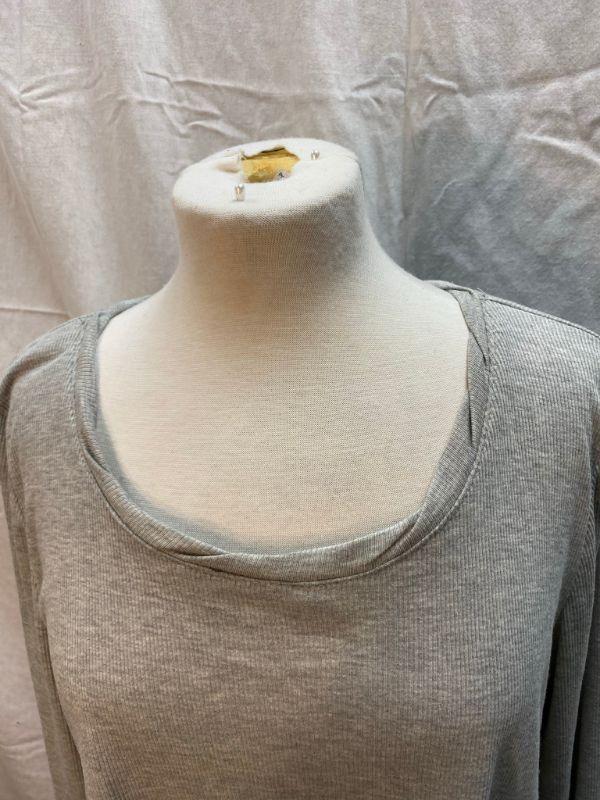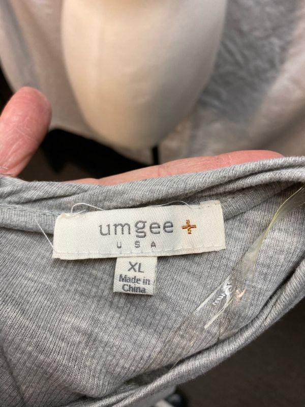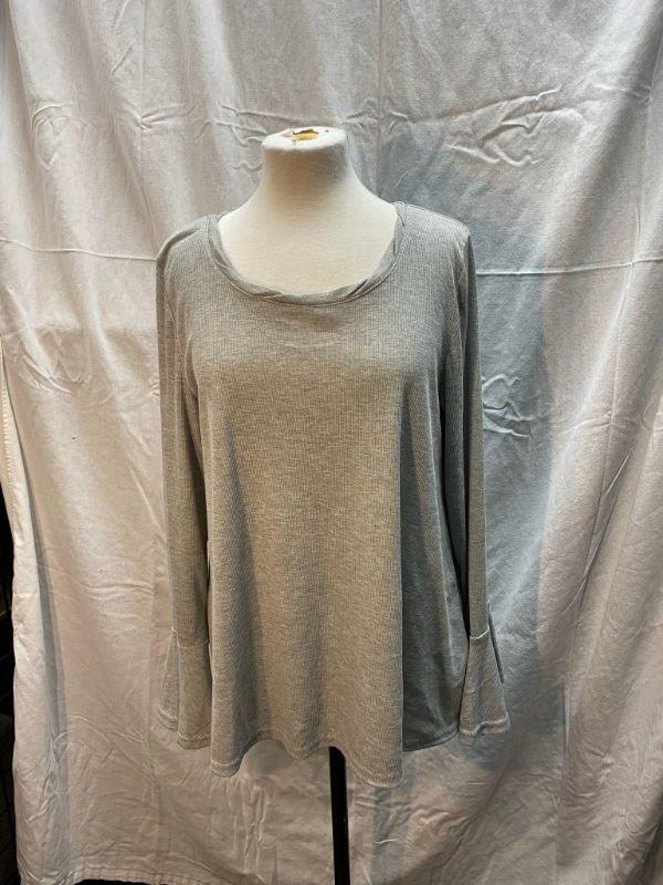 Umgee ruffle & lace open back tunic. Light heather grey. Bell cuff to the sleeves. Size XL. Good condition.
