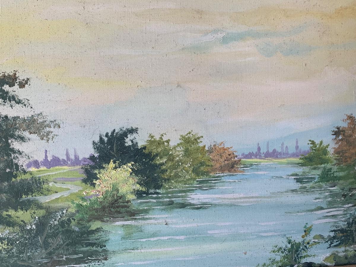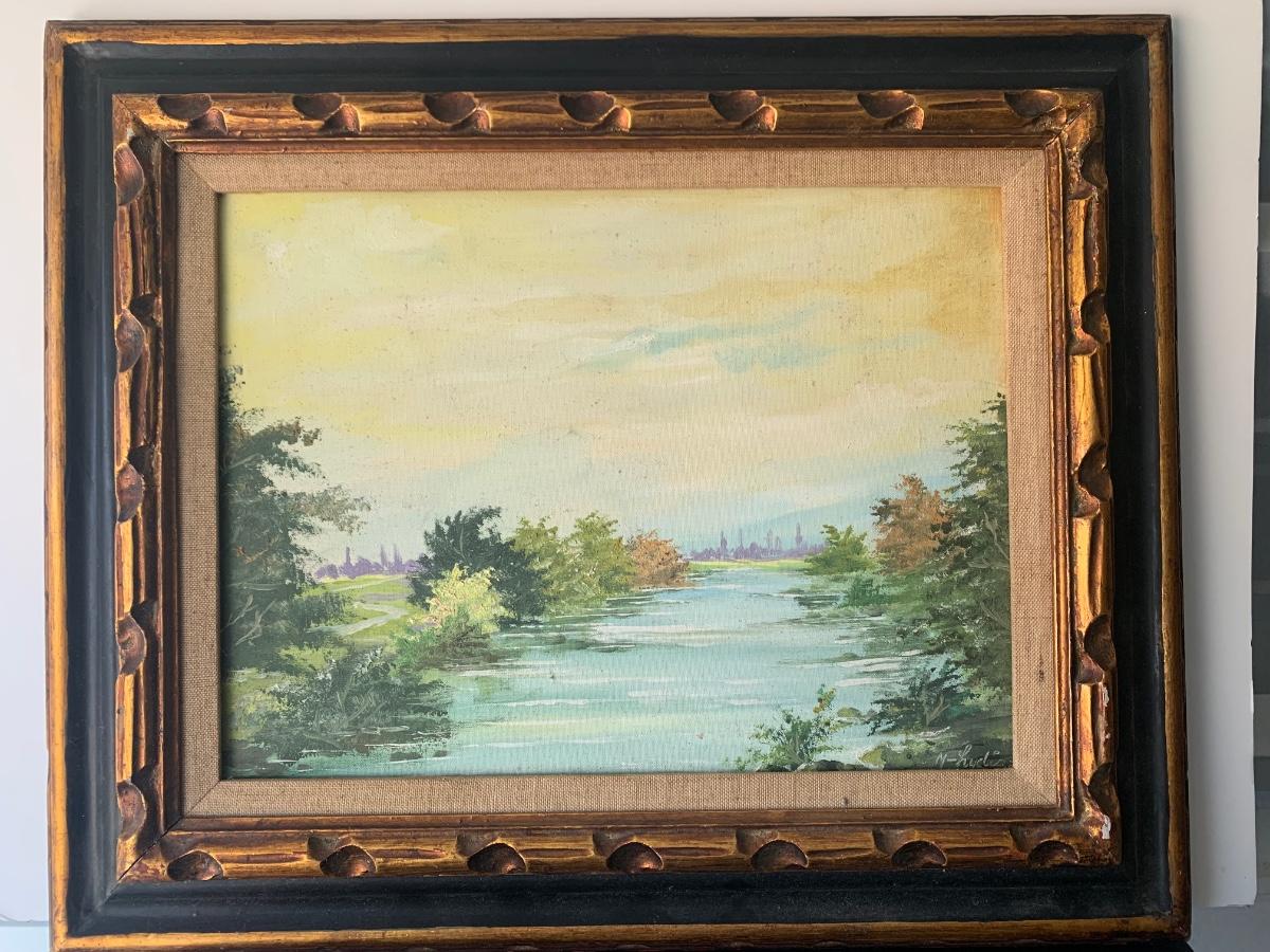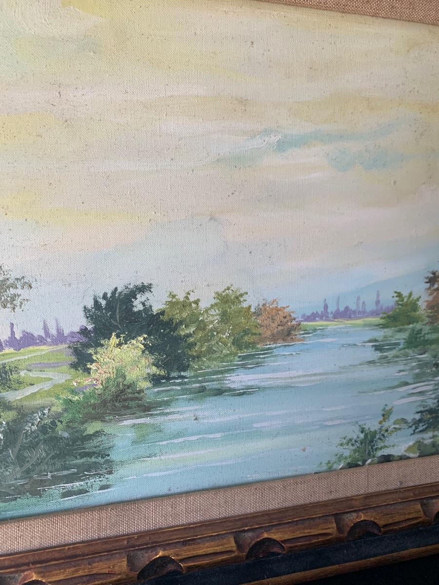 Un Hun Signed Landscape Oil On Canvas Framed
