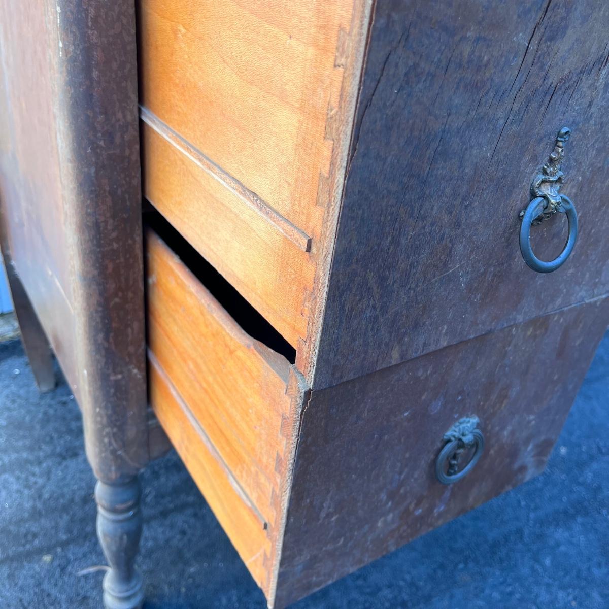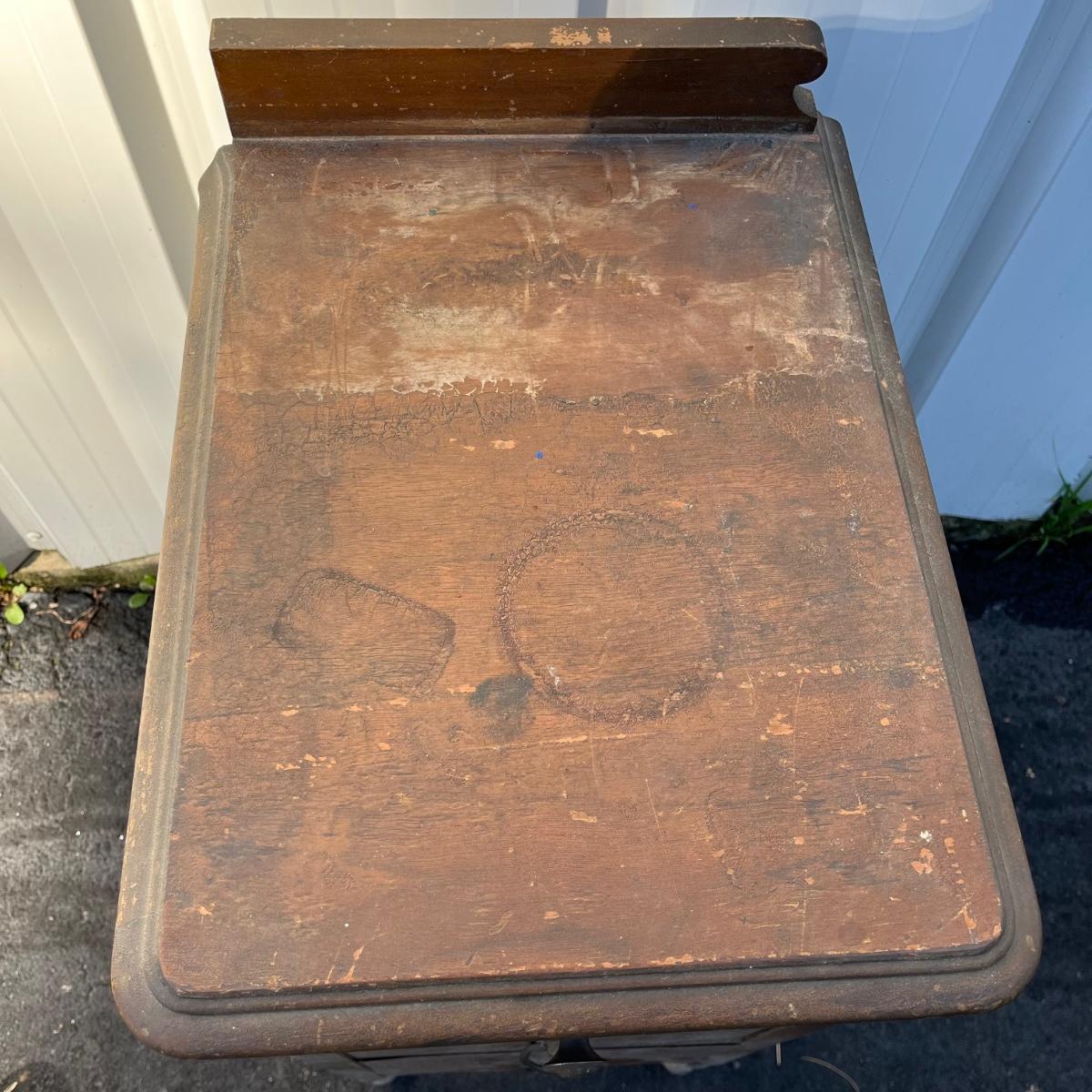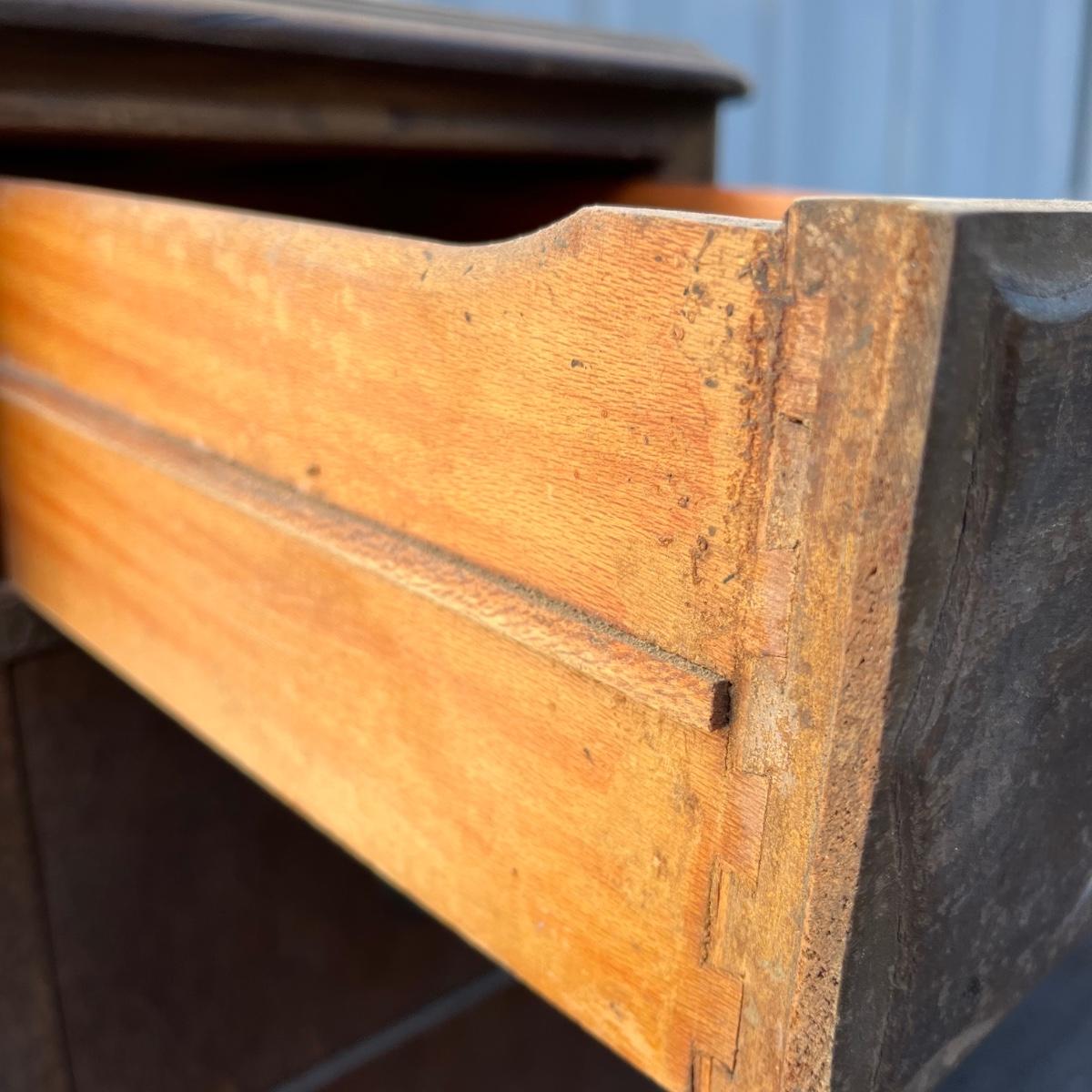 Lot includes a Unagusta #600 combination walnut three dovetailed drawer cabinet. Cabinet has scratches and nicks and the veneer is coming loose on drawers, see pictures. Cabinet measures 14” x 18” x 33”.