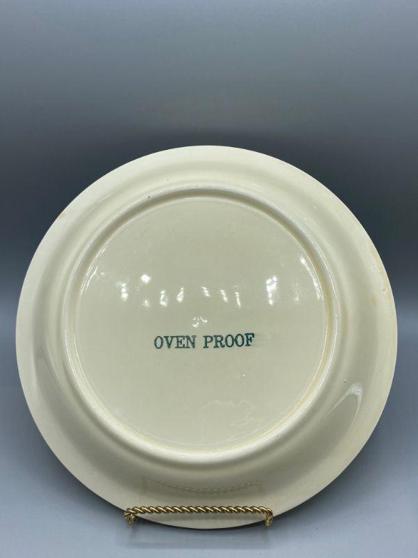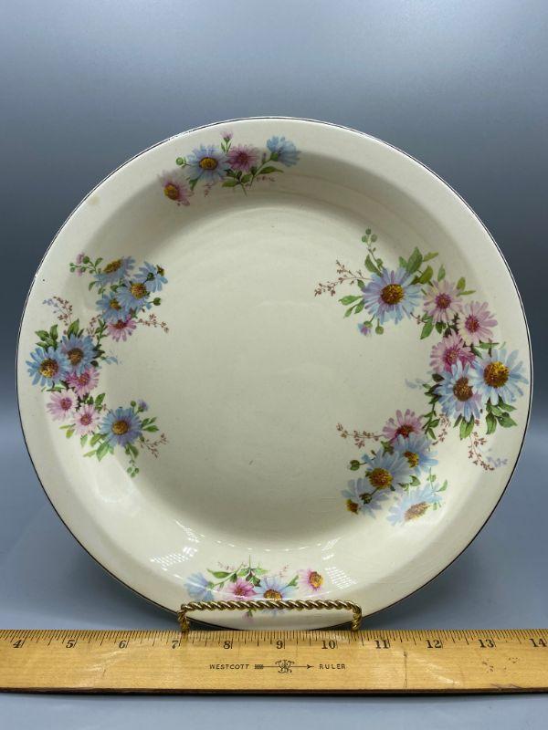 Ceramic floral pie plate. Off white with blue and pink daisy flowers. No chips but there is some crazing. along one side more then the other. Oven Proof.