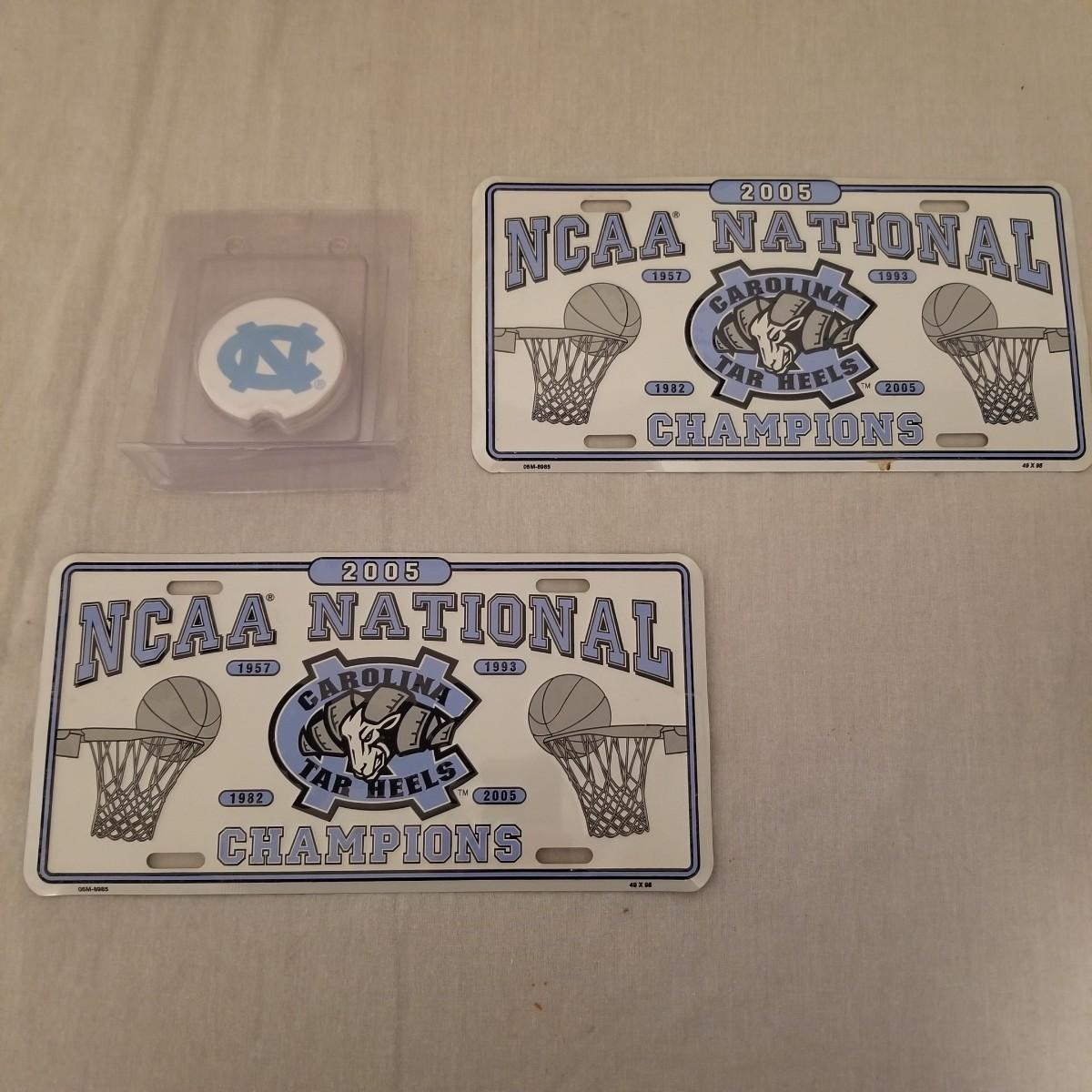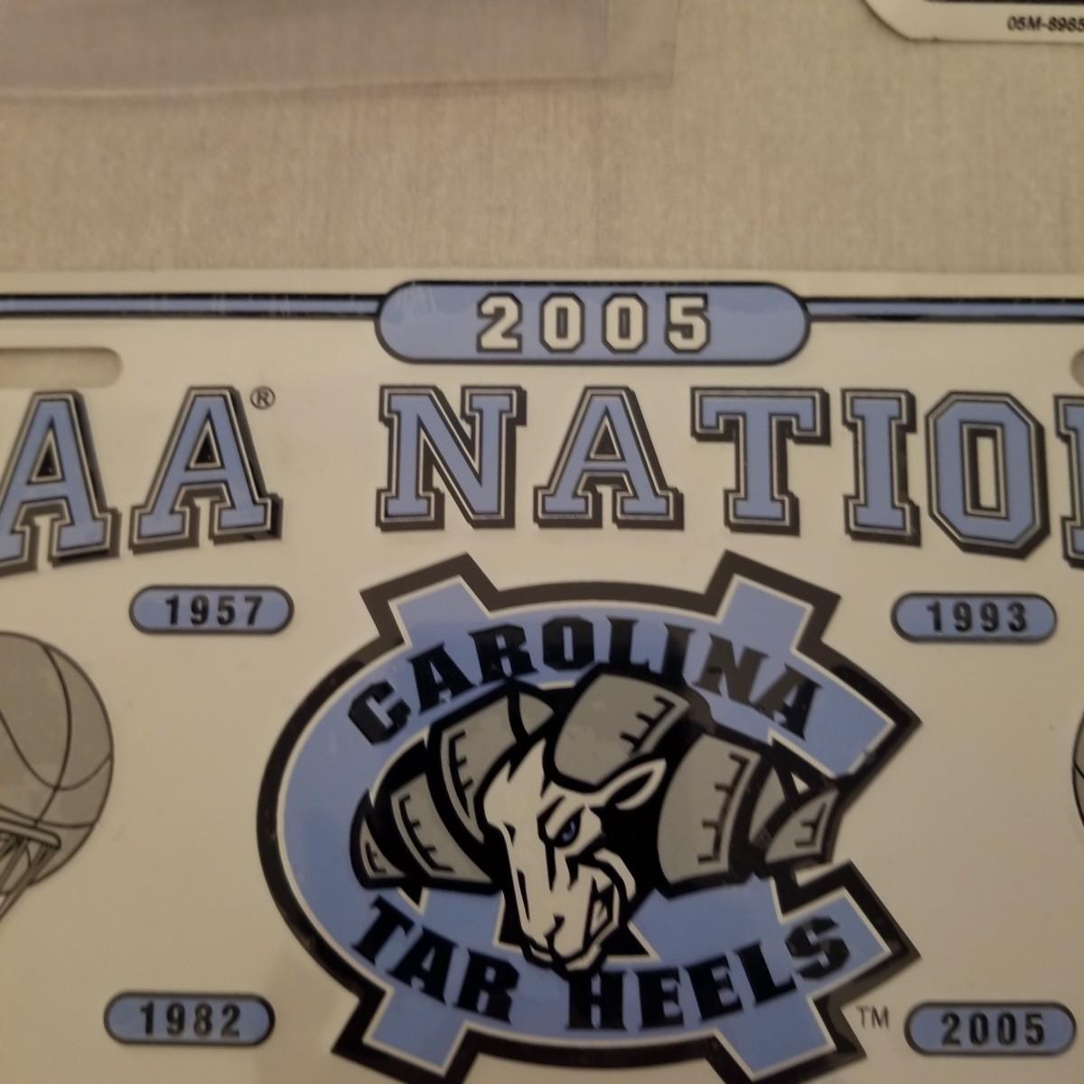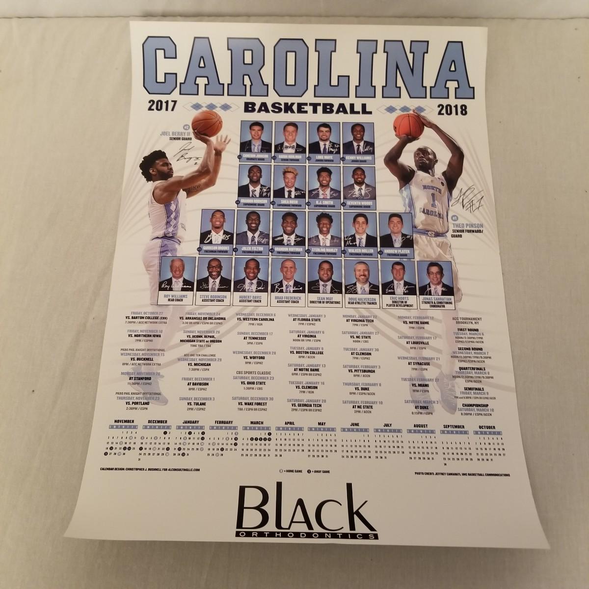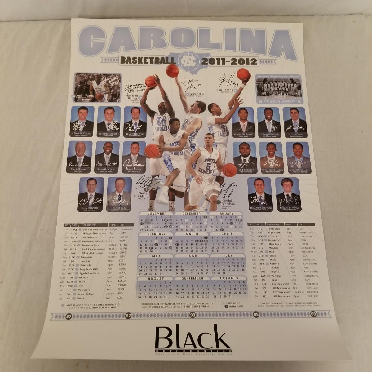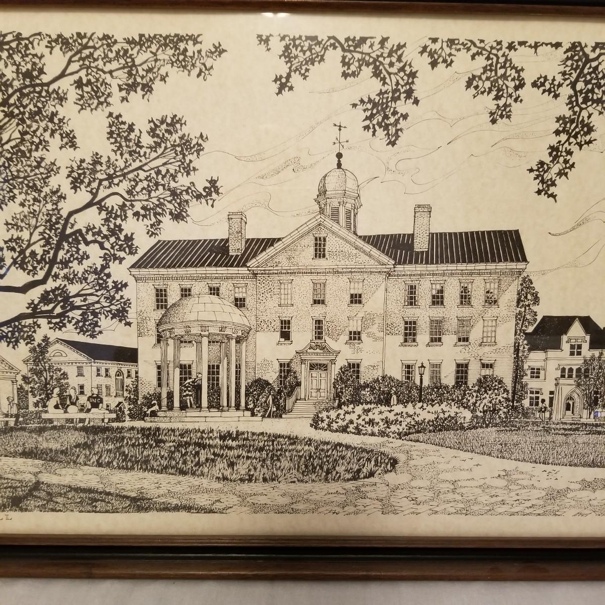 The wood framed print of the UNC Chapel Hill Campus and Old Well and is 39"x15.5", that appears to be pencil signed by artist Ahern, 1980. There is also a great collection of UNC items including basketball calendar posters, license plates, medallions. Calendars are from 2010-2014, 2016-2018, 2020 and 2021. Most all measure 18"x25", the 2016 is 12.5" x27". All items in fair to good condition, see photos for details. Shipping available. Shipping Art can be costly please call UPS store at 828-252-6930 for quote.