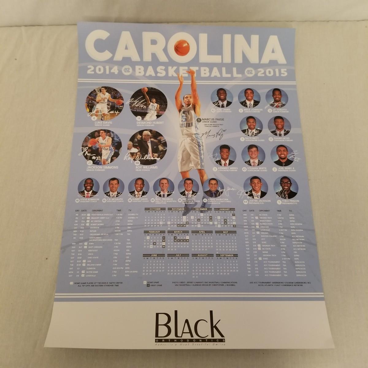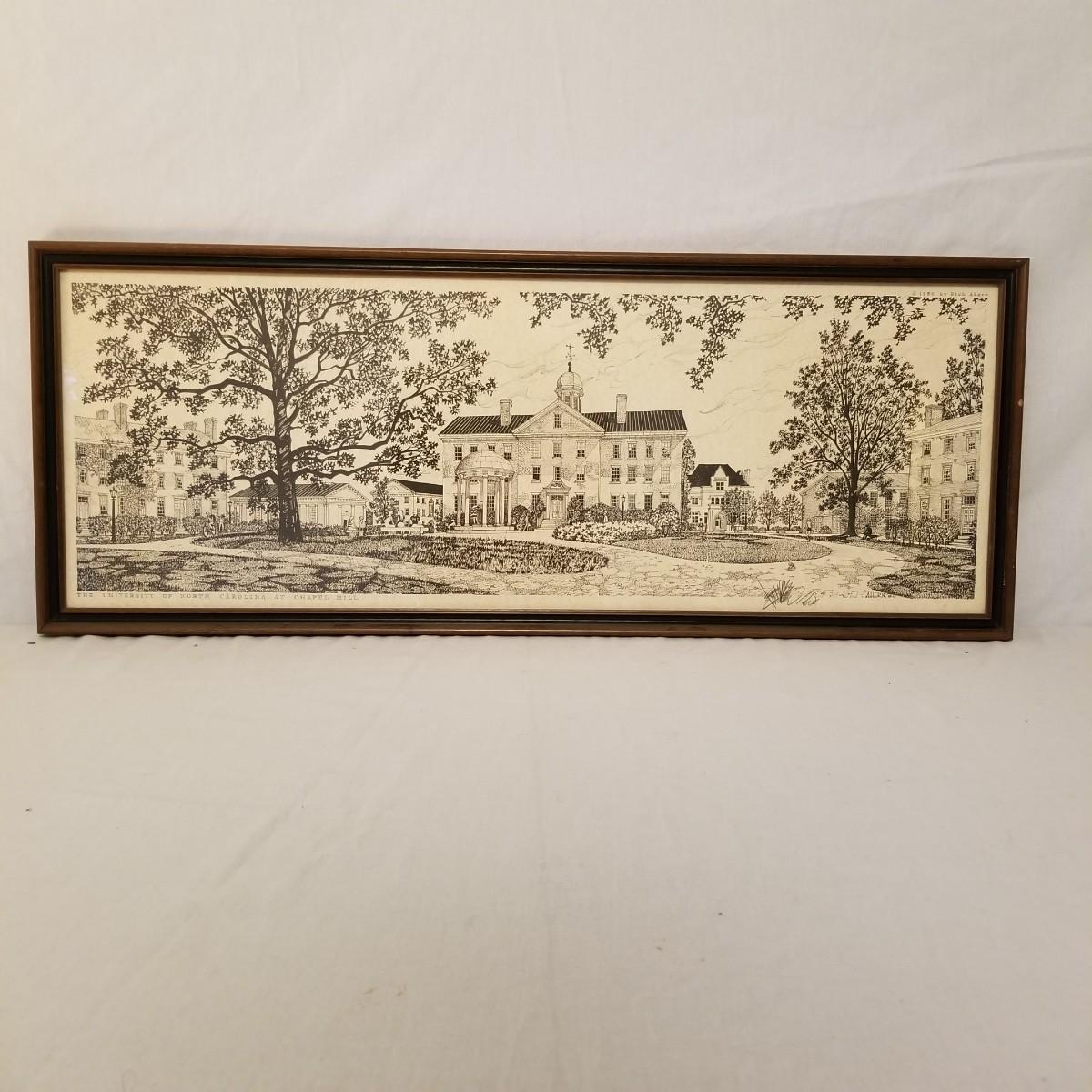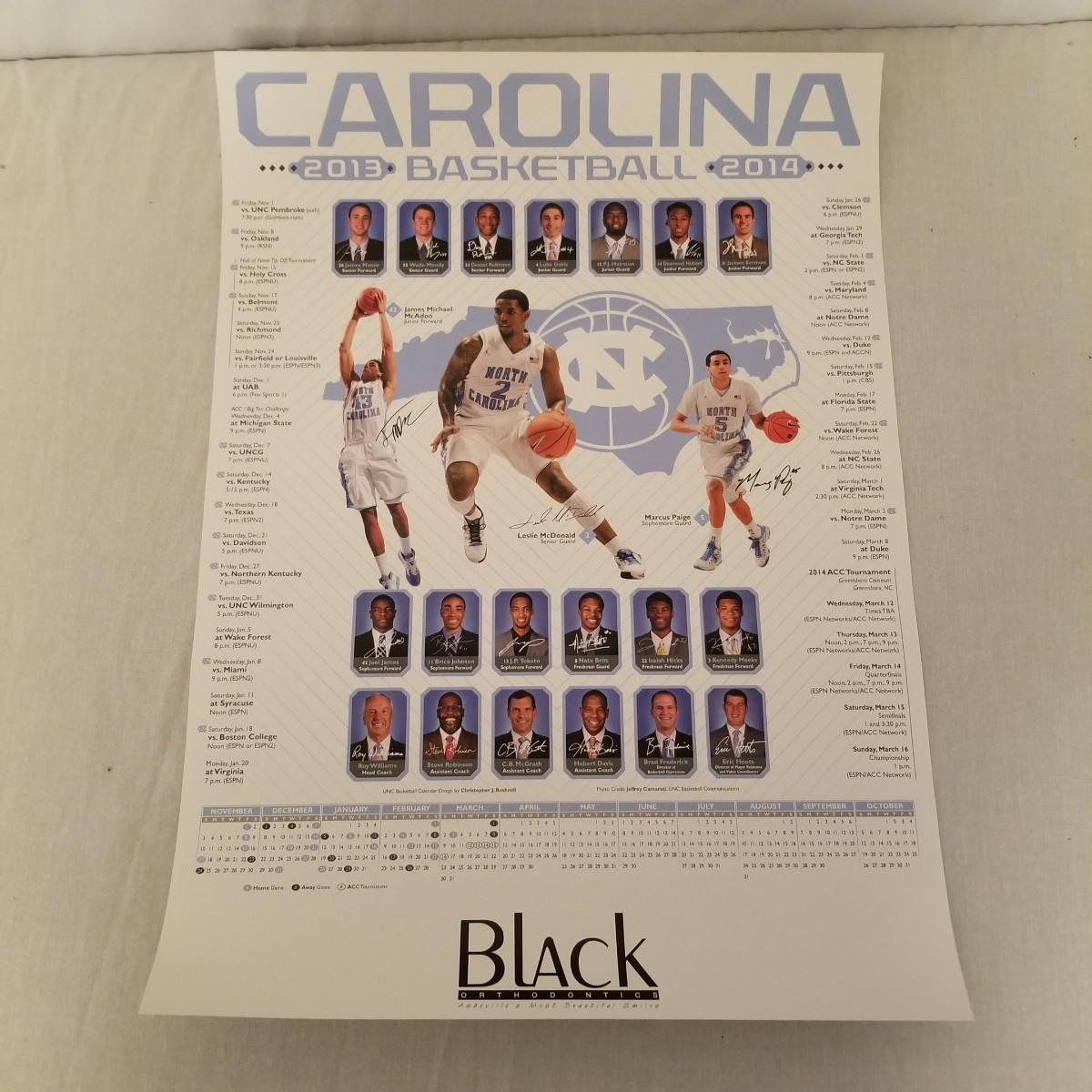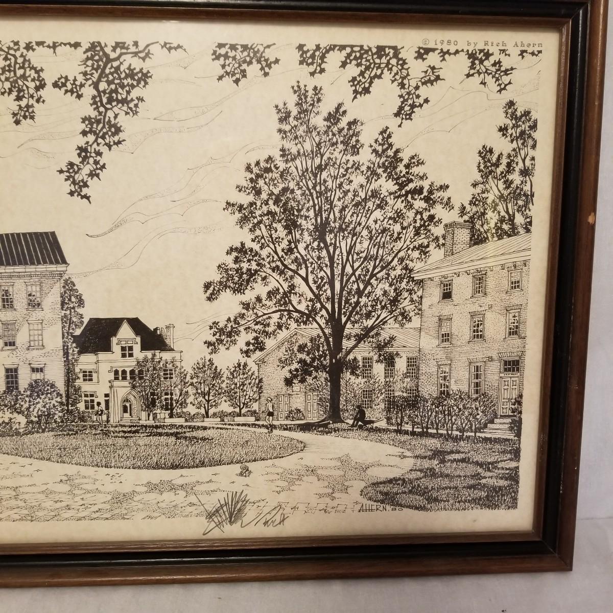 The wood framed print of the UNC Chapel Hill Campus and Old Well and is 39"x15.5", that appears to be pencil signed by artist Ahern, 1980. There is also a great collection of UNC items including basketball calendar posters, license plates, medallions. Calendars are from 2010-2014, 2016-2018, 2020 and 2021. Most all measure 18"x25", the 2016 is 12.5" x27". All items in fair to good condition, see photos for details. Shipping available. Shipping Art can be costly please call UPS store at 828-252-6930 for quote.