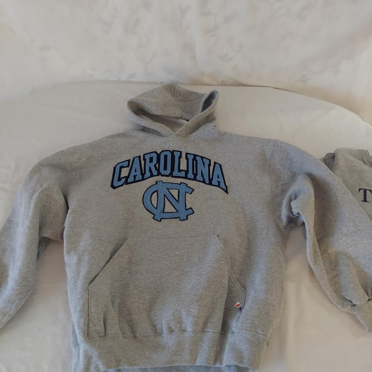 Lot includes one bag, three sweatshirts, six ball caps and one visor. Most pieces are UNC Tarheels merch but also includes some Carolina Panthers, NC State and other North Carolina swag. Please see photos for details. Shipping available