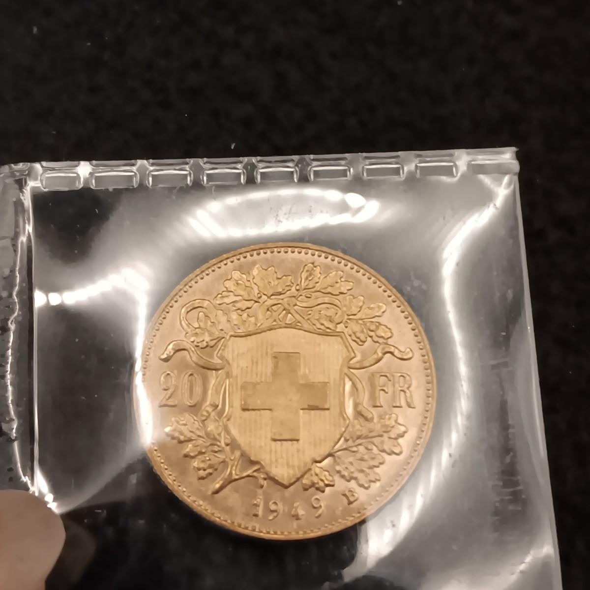 UNCIRCULATED 1949 HELVETIA 20 FRANCS SWISS GOLD COIN