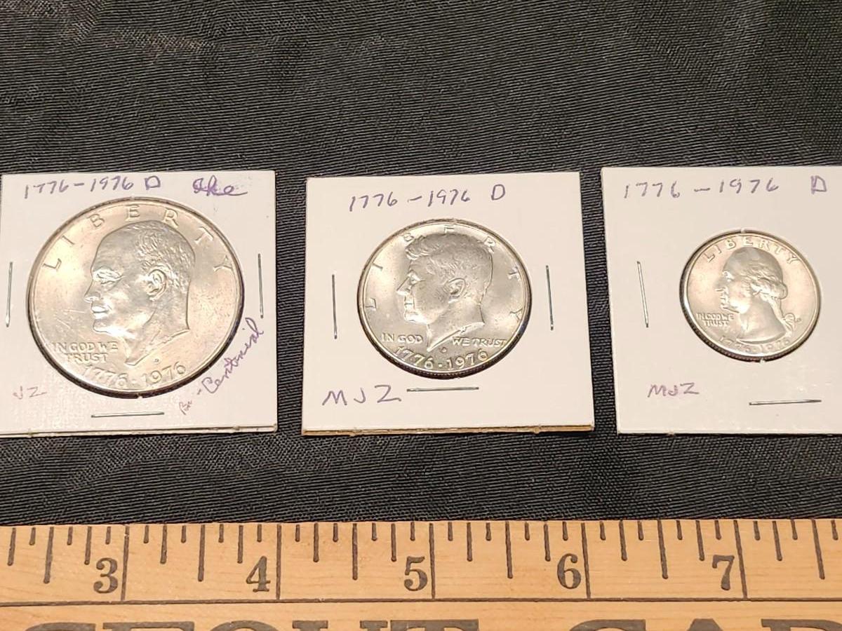 Uncirculated 1976 Eisenhower Ike Dollar, 1976 Kennedy Half Dollar , 1976 Quarter