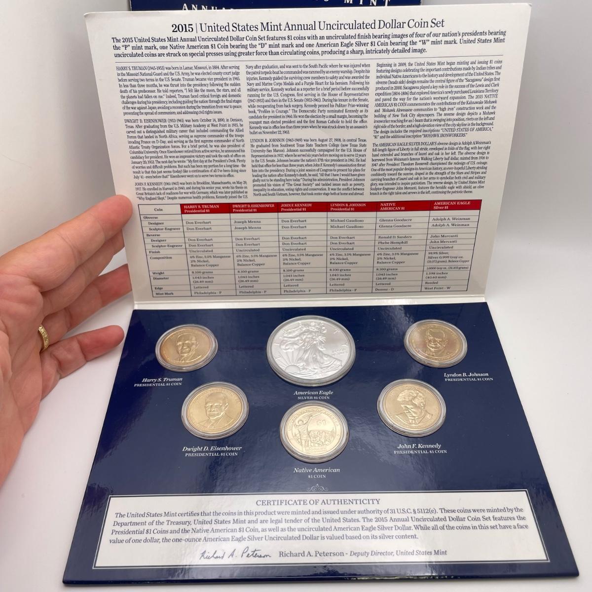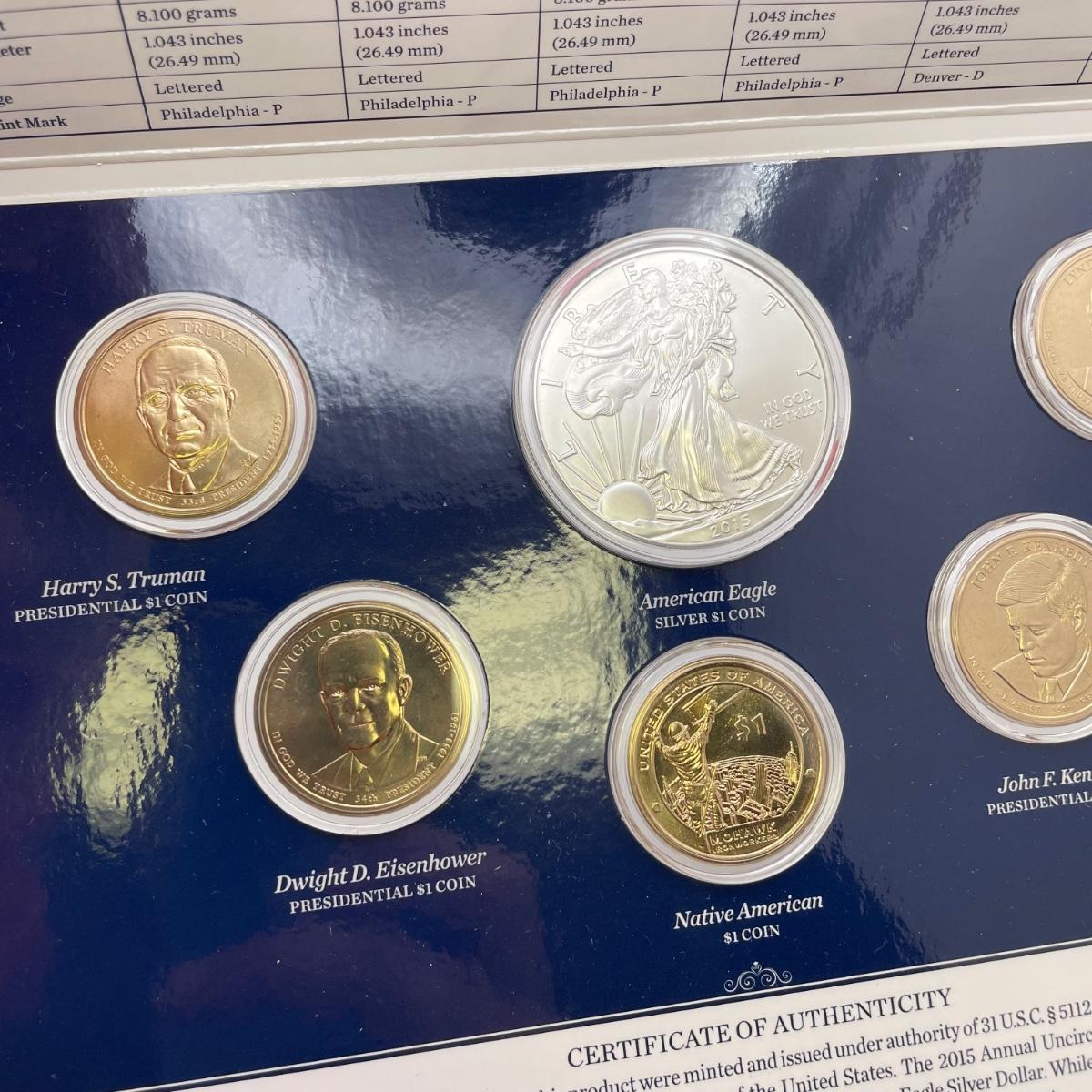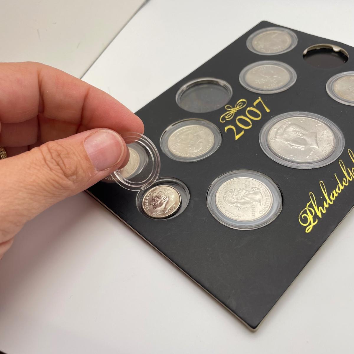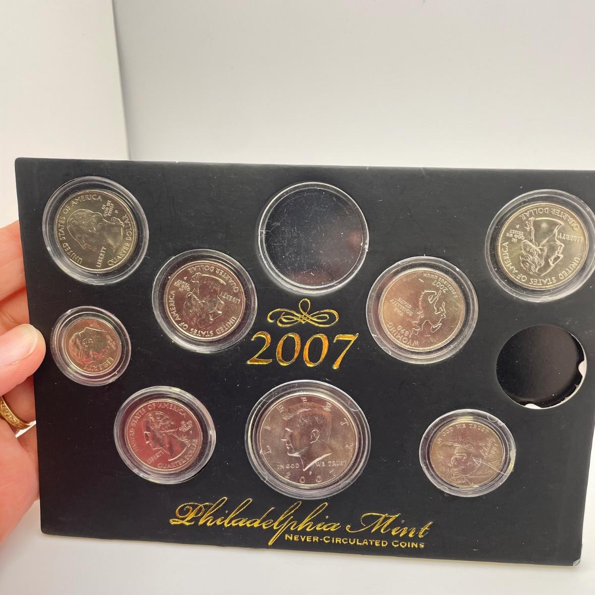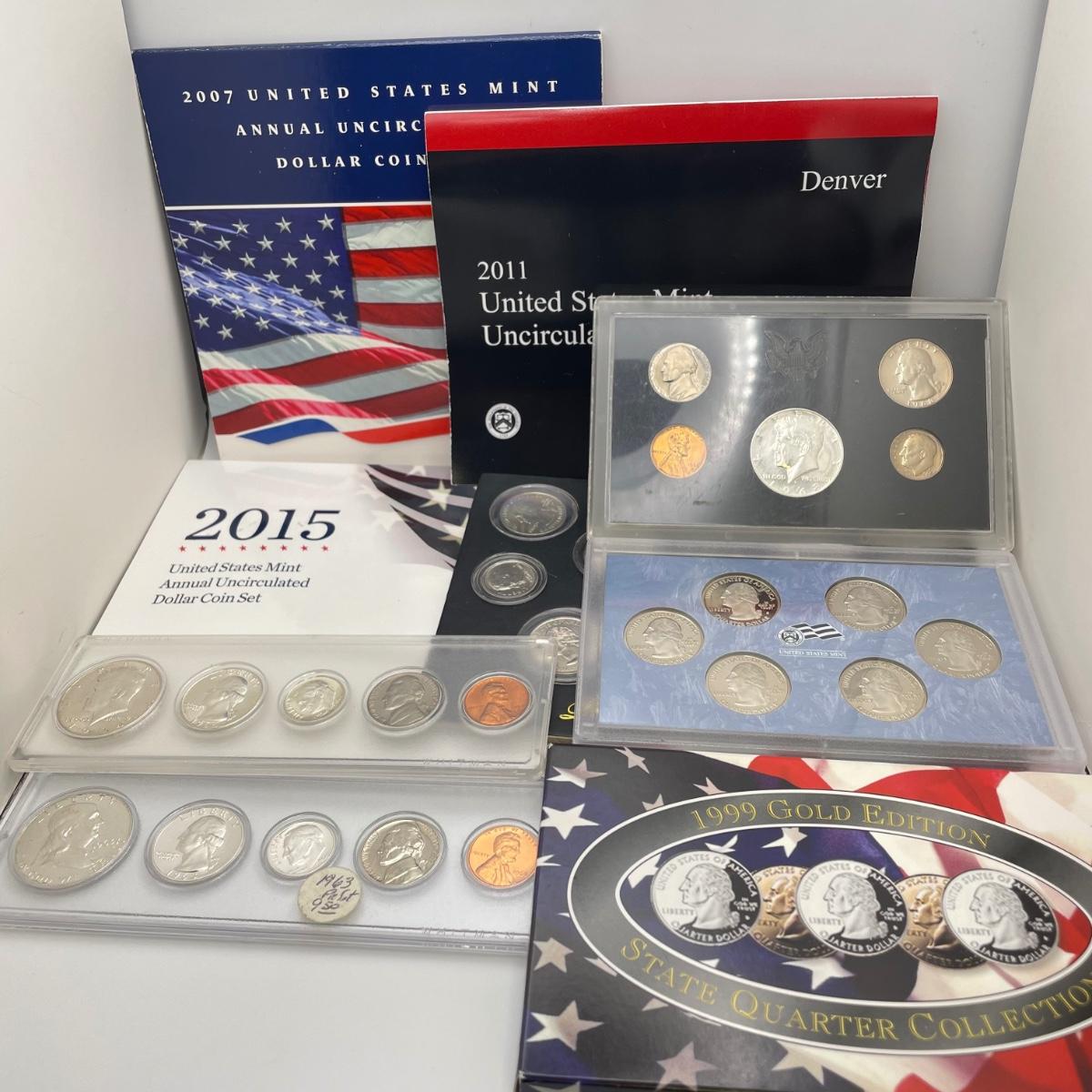 Lot includes 1963 and 1964 coin sets in capital plastic. The 1963 set has a sticker with “1963 PR Set” on it. Also featured are 2007 and 2015 sets titled “United States Mint Annual Uncirculated Dollar Coin Set”. A 1999 Gold Edition State Quarter Collection, a 2011 US Mint Uncirculated Coin Set, a six coin set of state quarters and 1968 coin set in capital plastic that says “United States Proof Set”. Lastly, an incomplete set of 2007 “Philadelphia Mint Never Circulated Coins”. One dime from this set has a loose cap. All sales are final. No returns or refunds. Please bid accordingly. Shipping available.