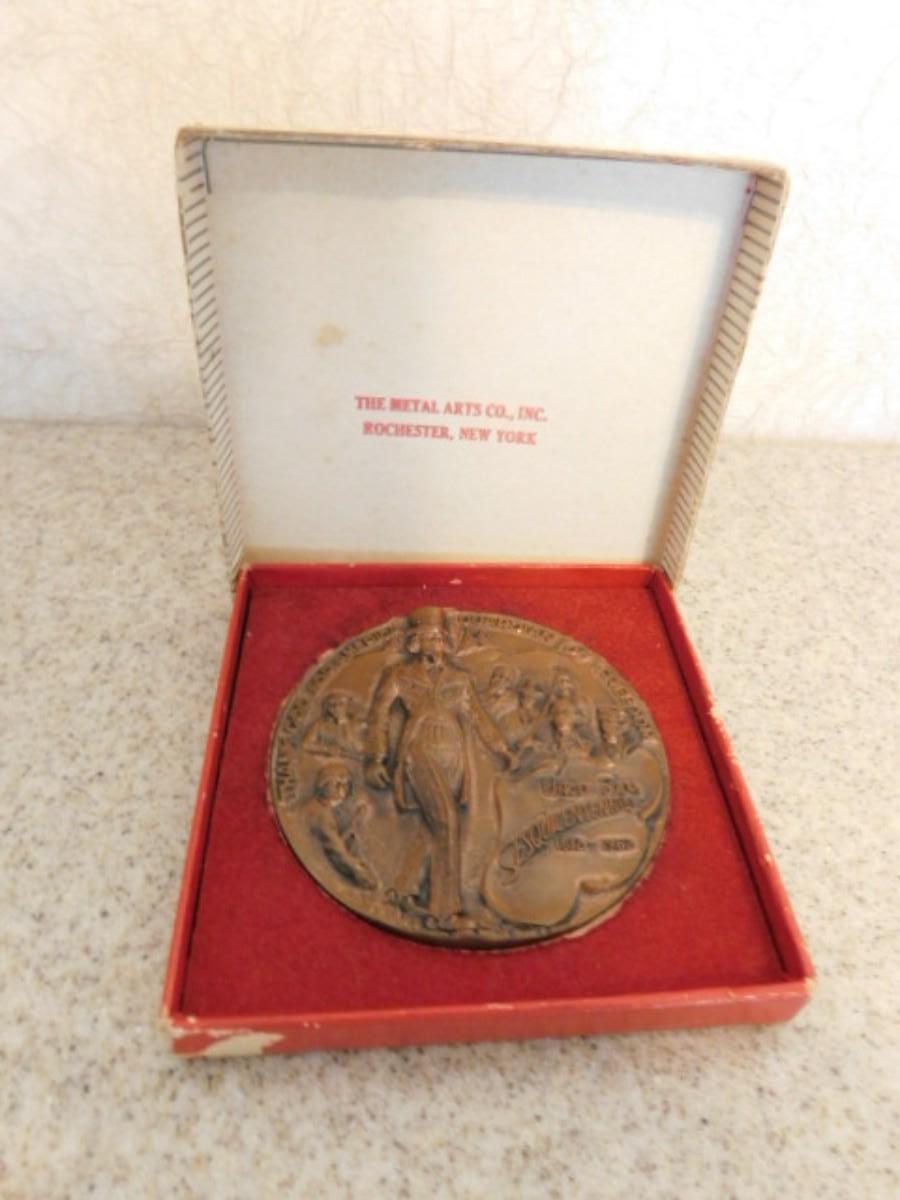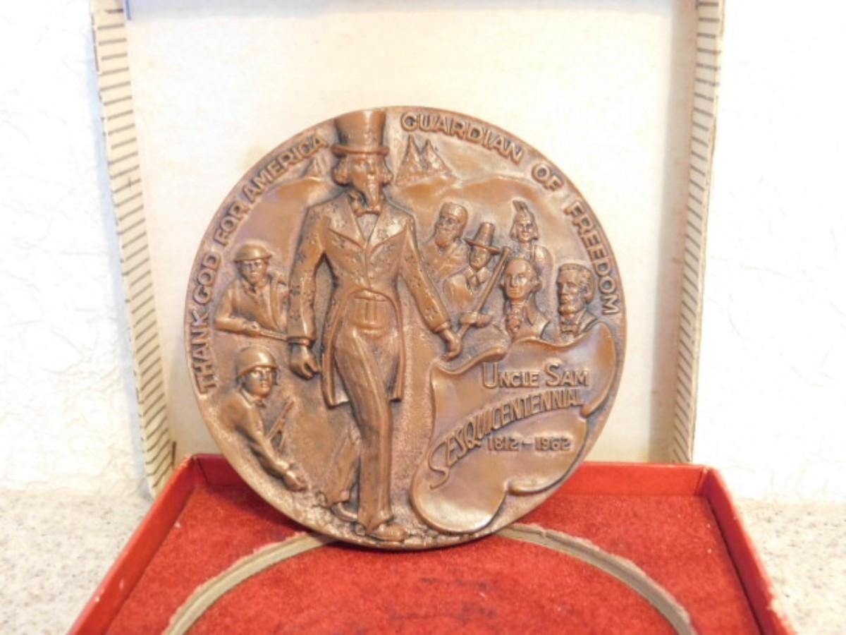Uncle Sam Sesquicentennial Bronze Metal 1812-1962 in Original Box
