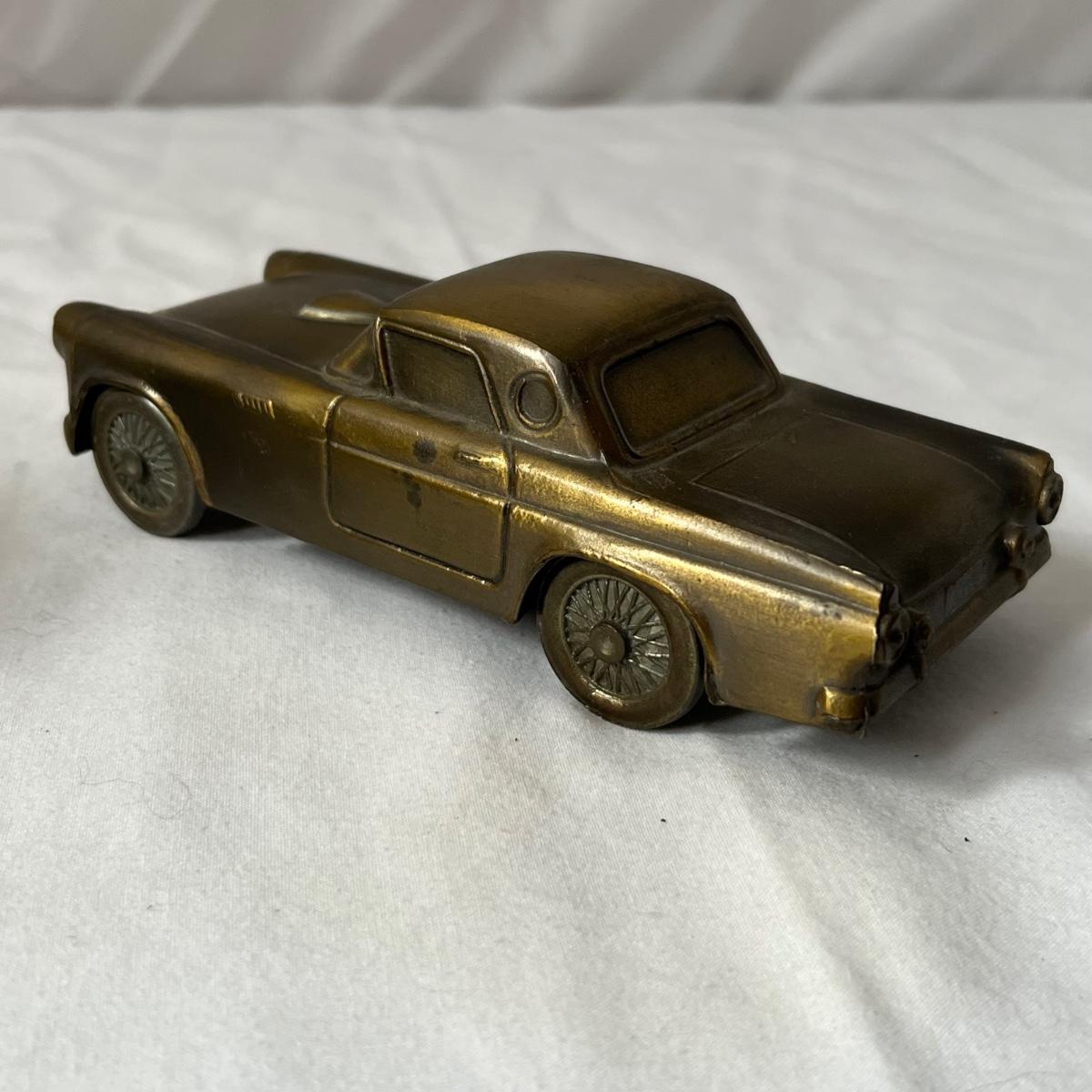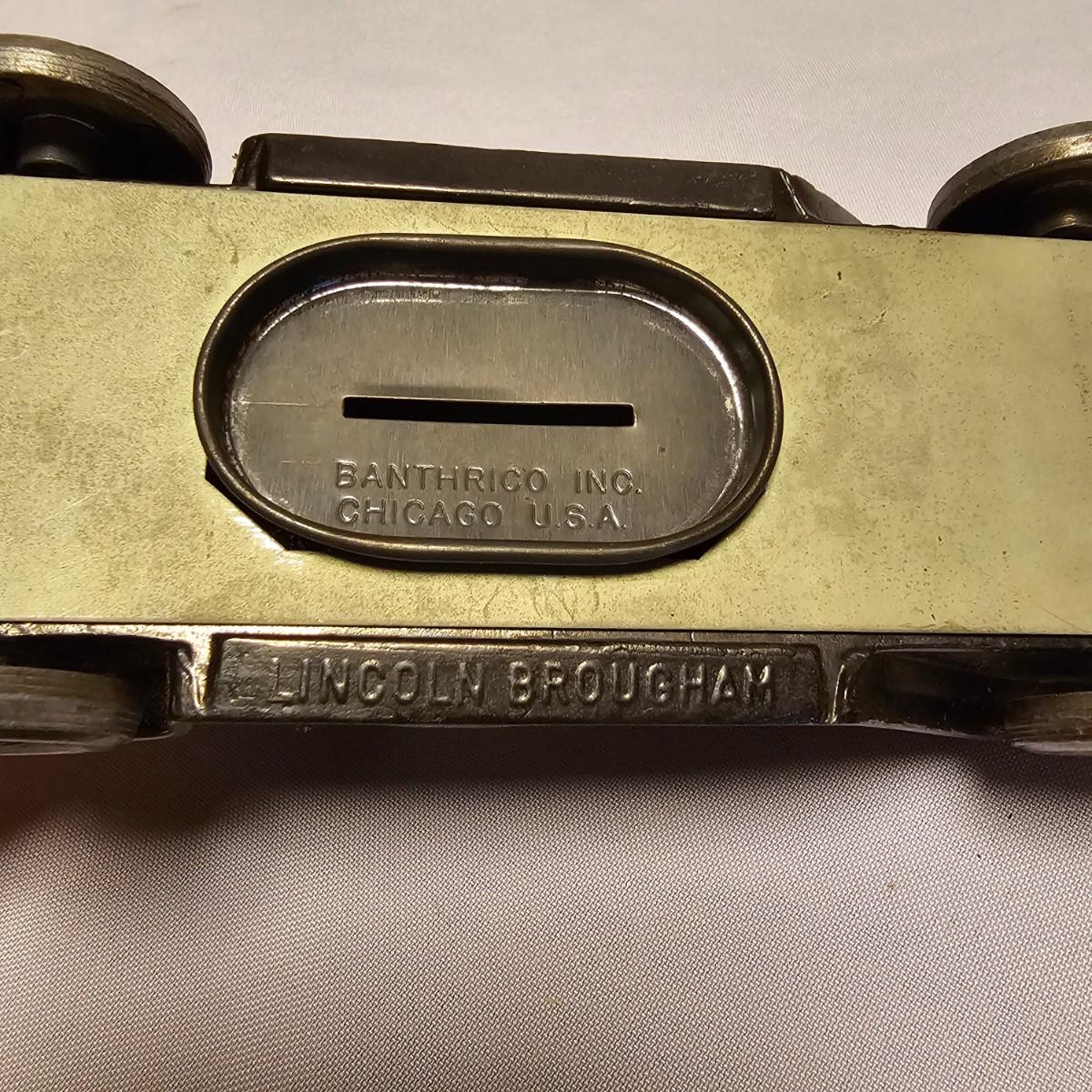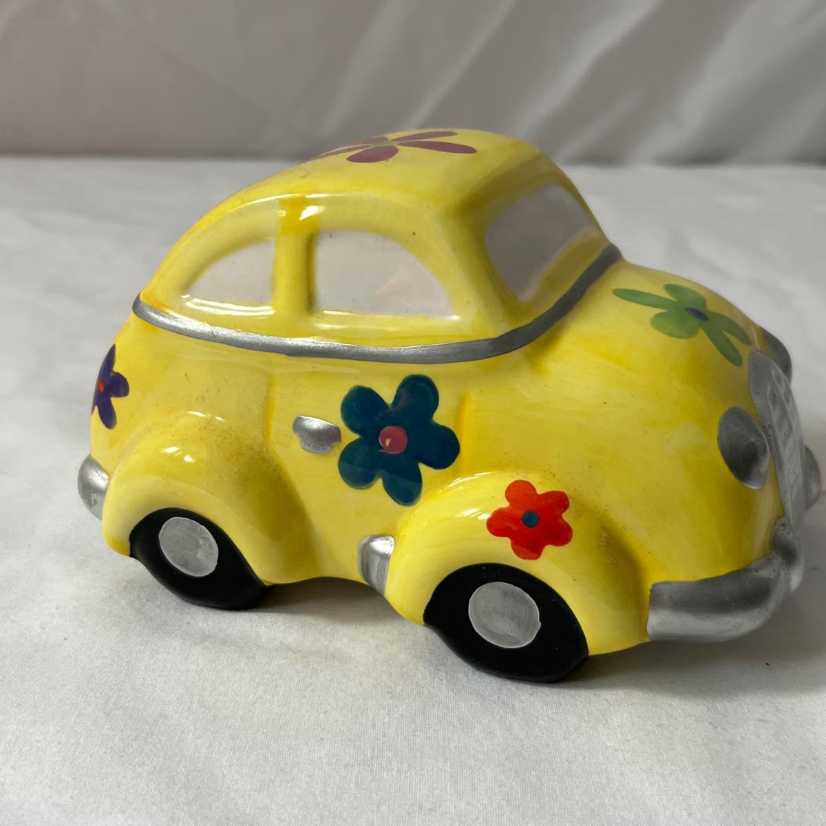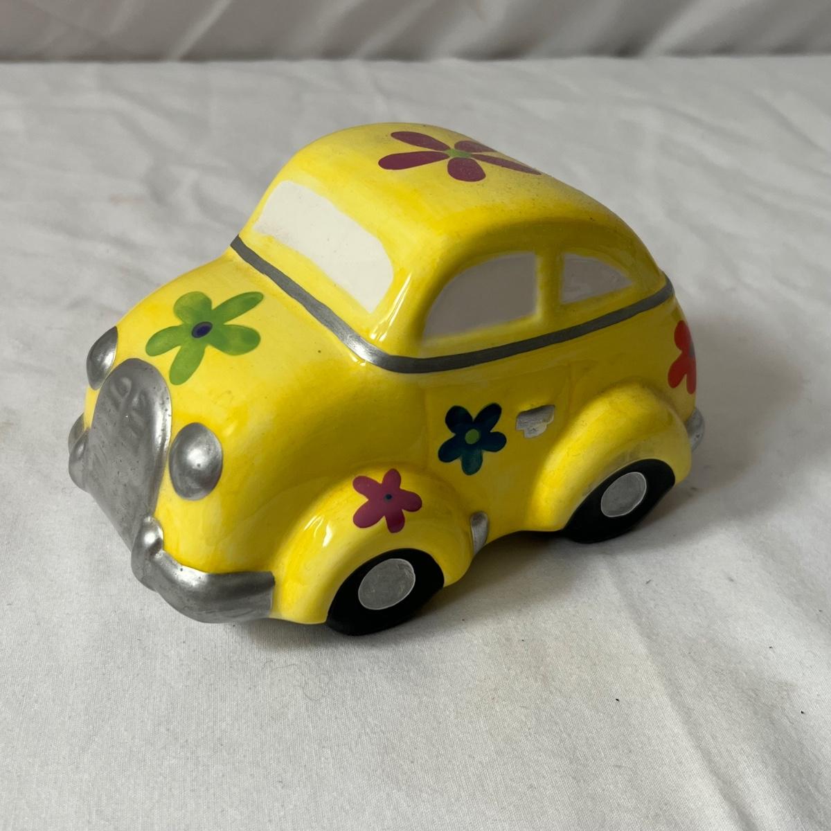 This vintage Uncle Sam’s coin bank comes complete with original box. It is NO.1300 B and measures 4” x 5” x 6”. Other banks includes a ceramic VW Bug, two metal classic cars that measure 3” x 7” x 2.5”, a gold bar that is 4" x 10" x 2"H, a tin London bus bank and two traditional glass piggy banks. Larger is 4" x 6" x 5.5"H, smaller is 2" x 4" x 3"H. Eight banks total. See photos for details.