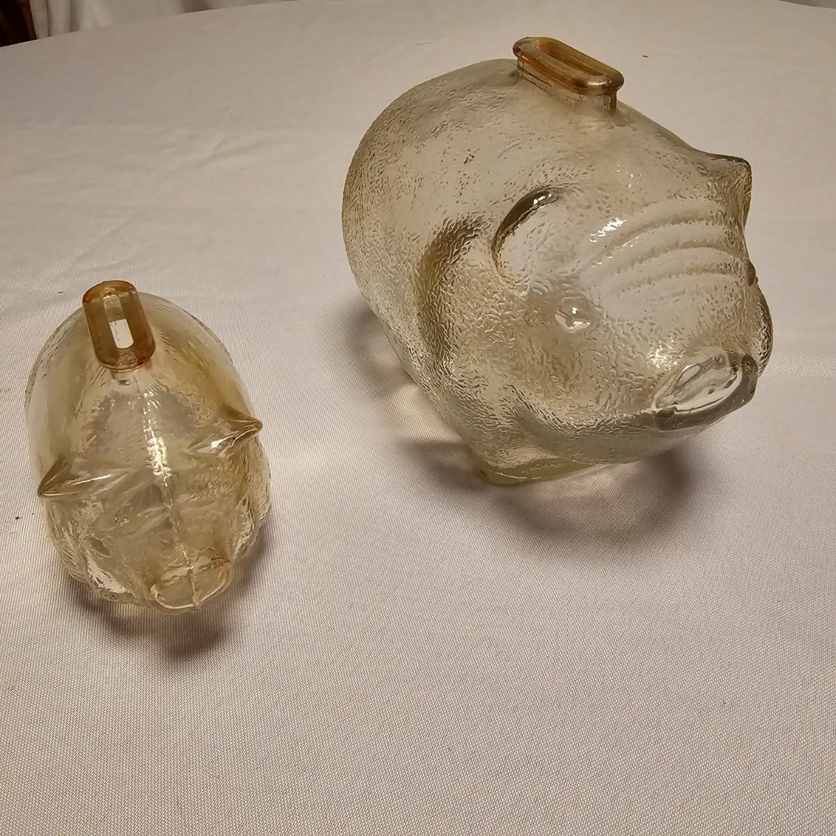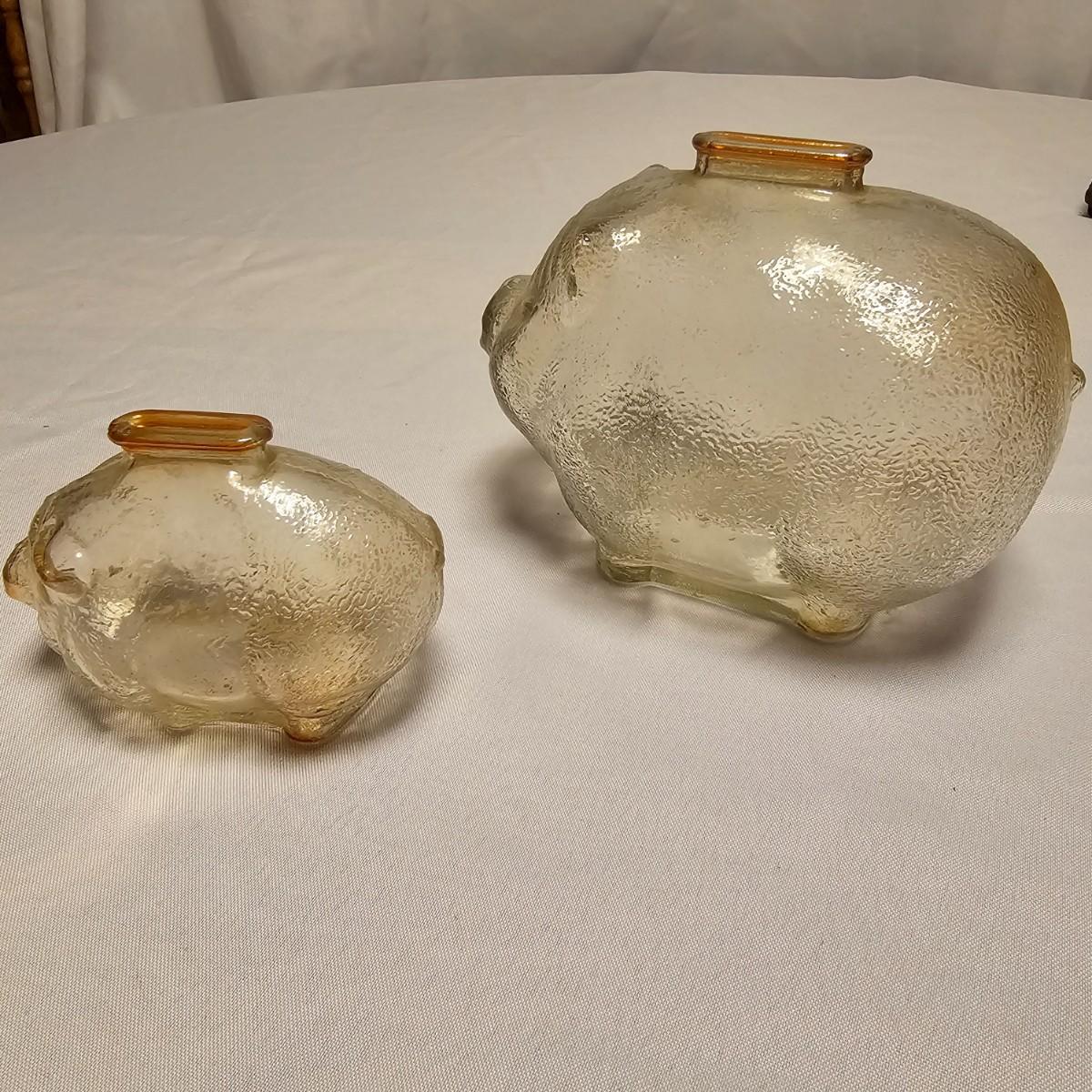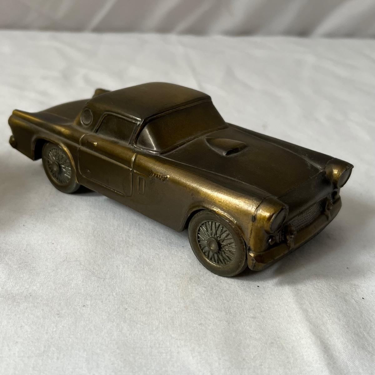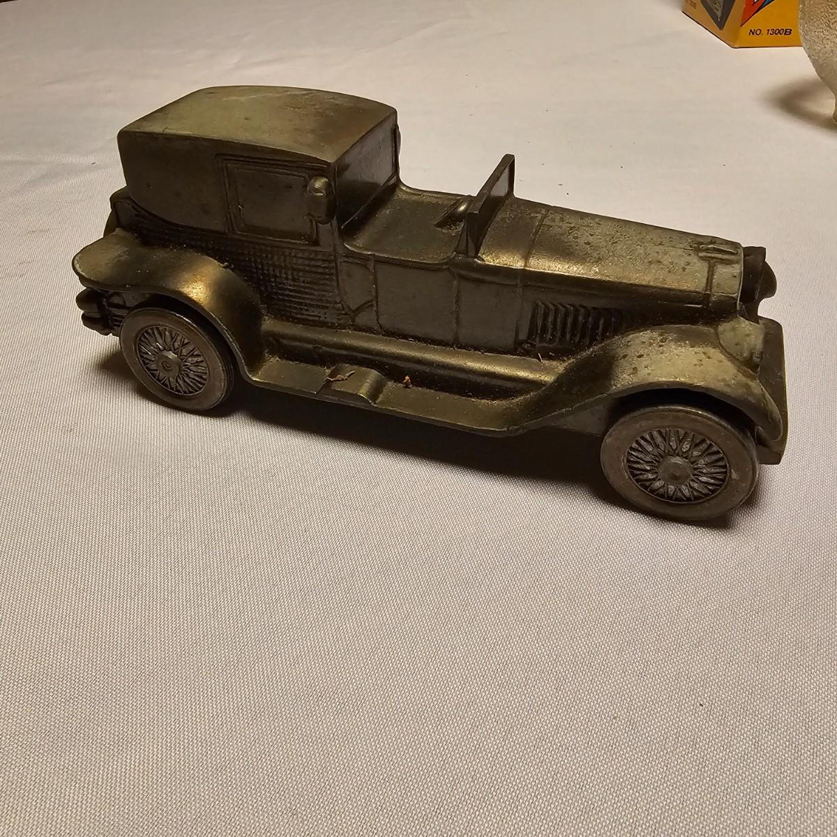 This vintage Uncle Sam’s coin bank comes complete with original box. It is NO.1300 B and measures 4” x 5” x 6”. Other banks includes a ceramic VW Bug, two metal classic cars that measure 3” x 7” x 2.5”, a gold bar that is 4" x 10" x 2"H, a tin London bus bank and two traditional glass piggy banks. Larger is 4" x 6" x 5.5"H, smaller is 2" x 4" x 3"H. Eight banks total. See photos for details.
