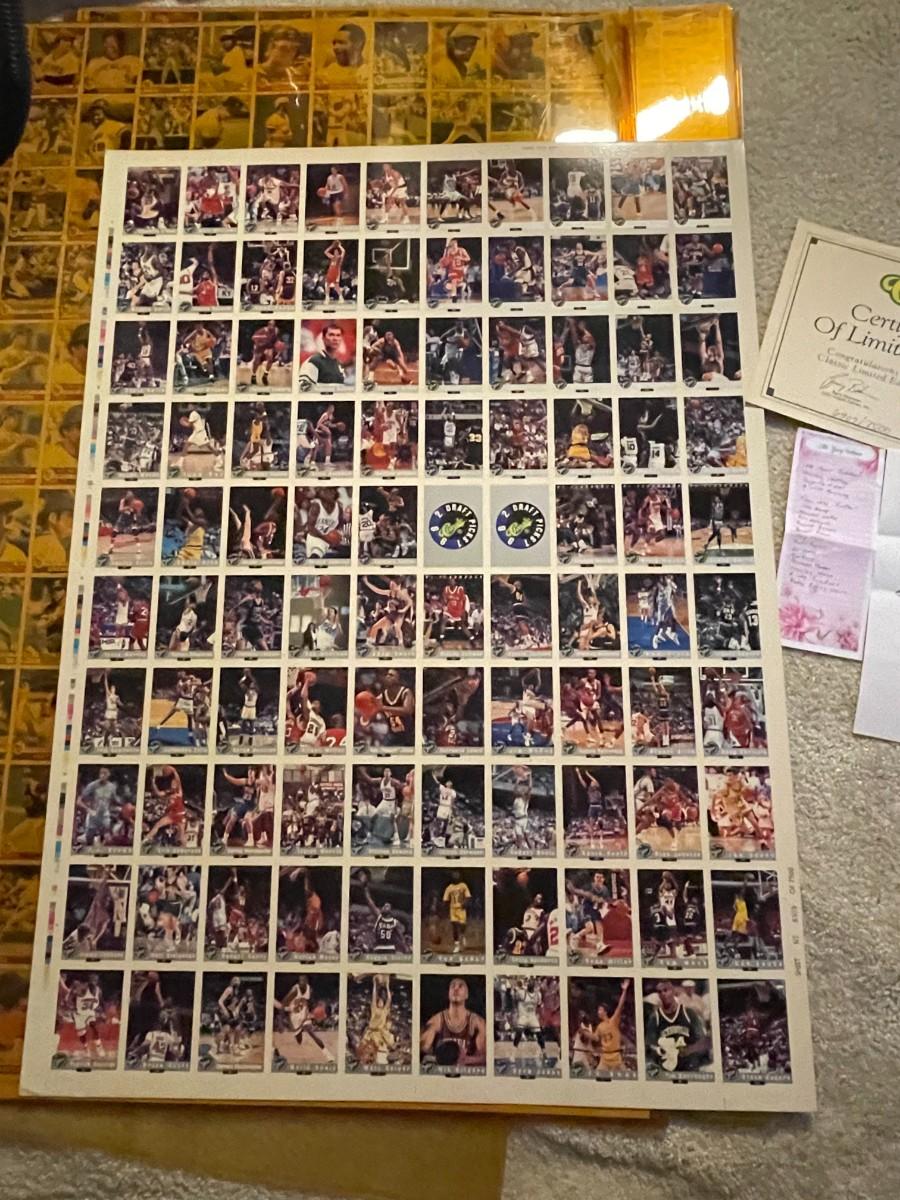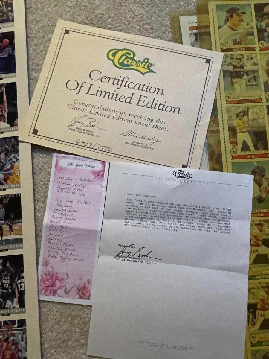 Classic 1992 limited edition basketball draft pick uncut sheet with COA.