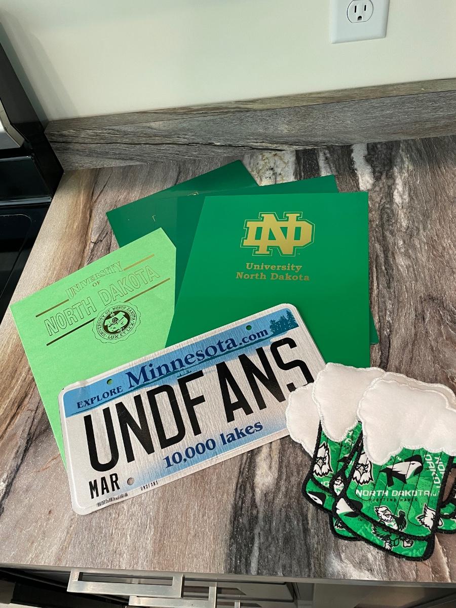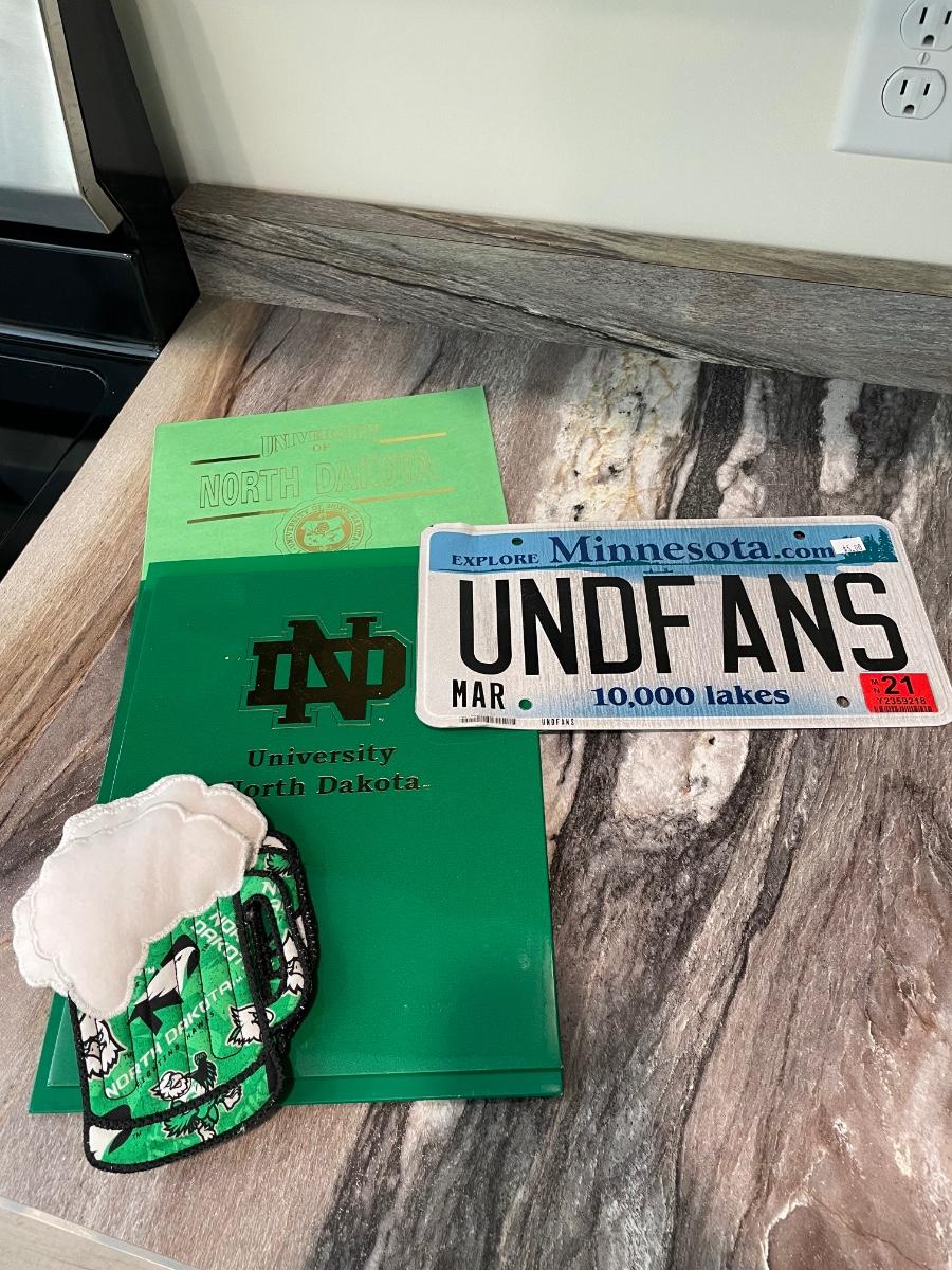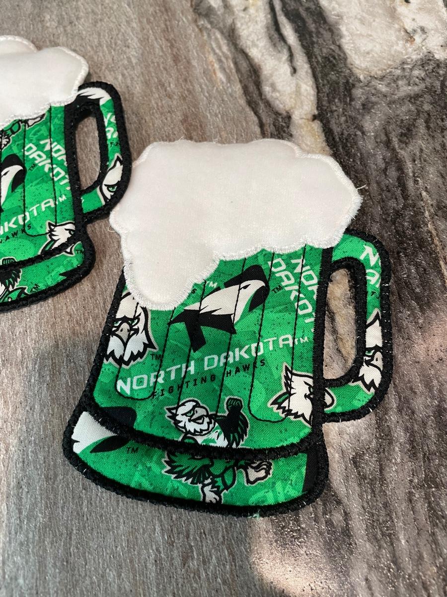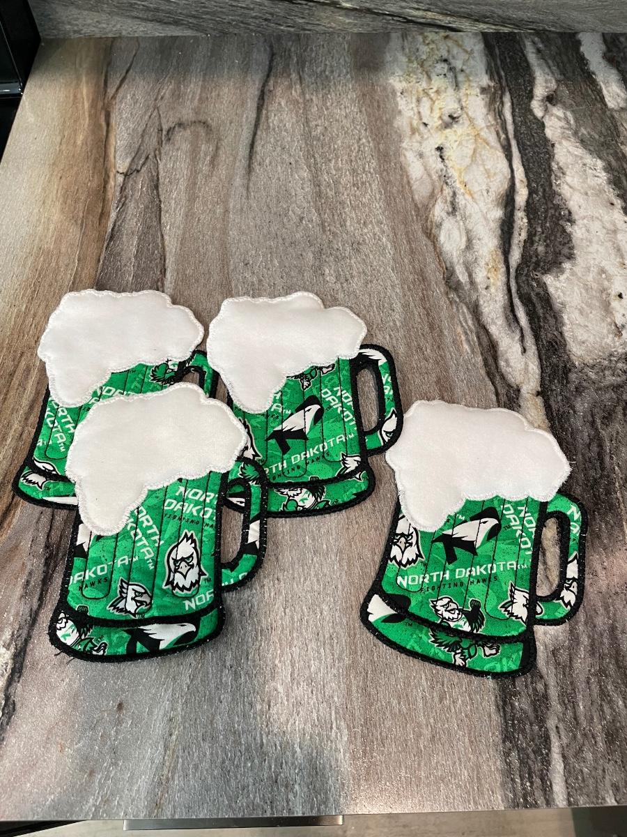 Handmade fabric coaster set of 4, folders, metal license plate.
