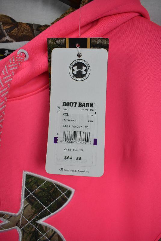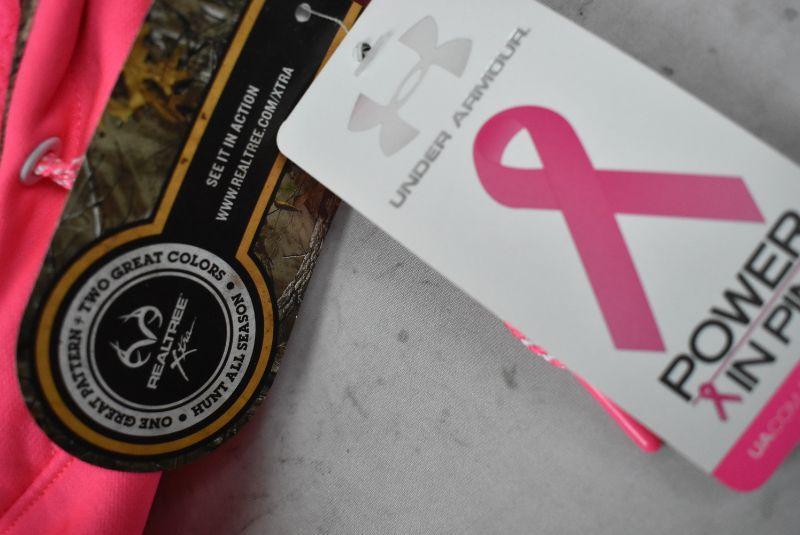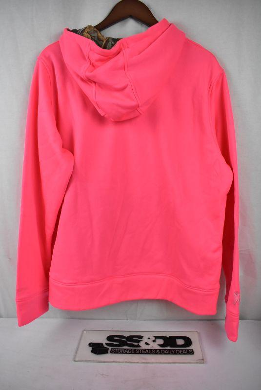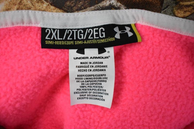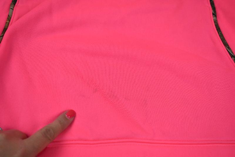 Under Armour RealTree Pink Hooded Sweatshirt, Size 2XL, discoloration on front, cleanable? $65 Retail - New
