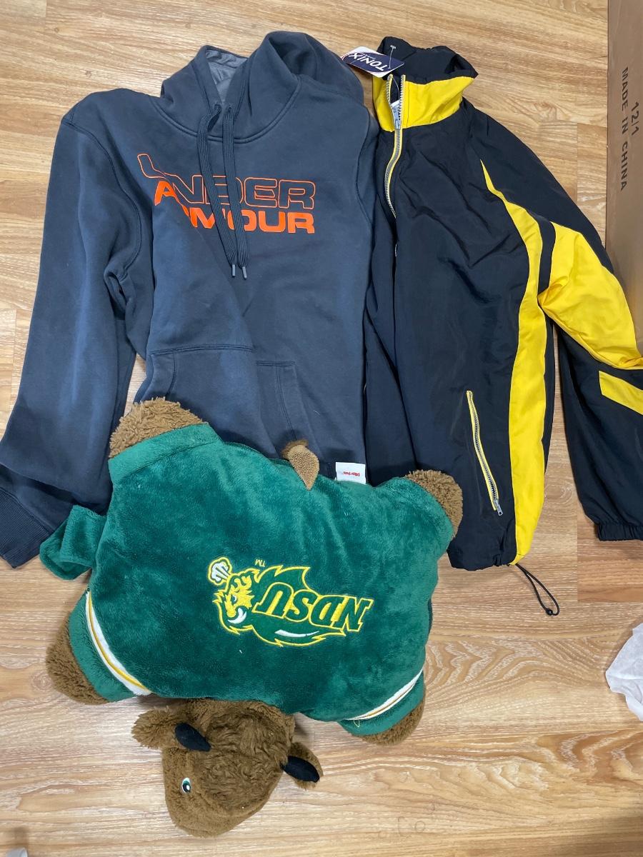 Under Armour sweatshirt, jacket and NDSU pillow per