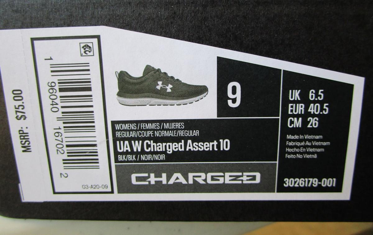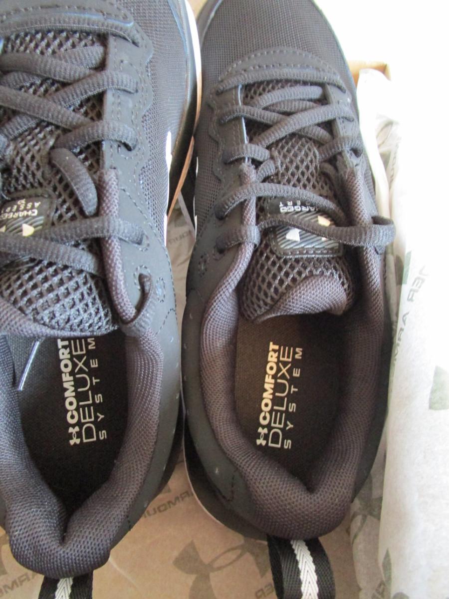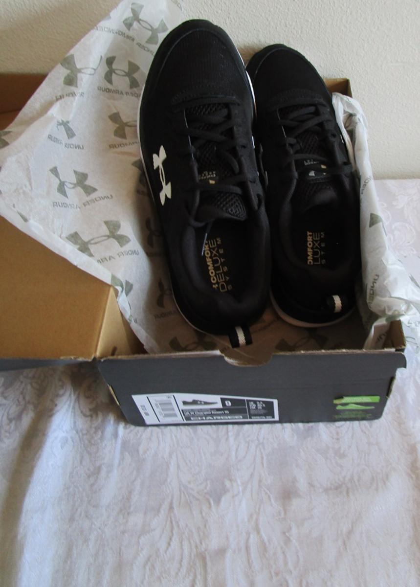 Size 9, UA W Charged Assert 10, black on black color