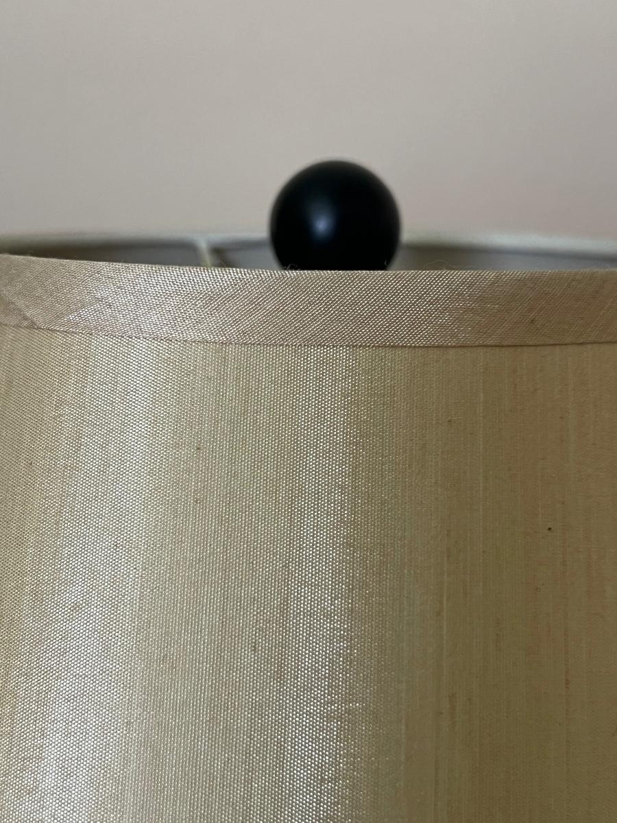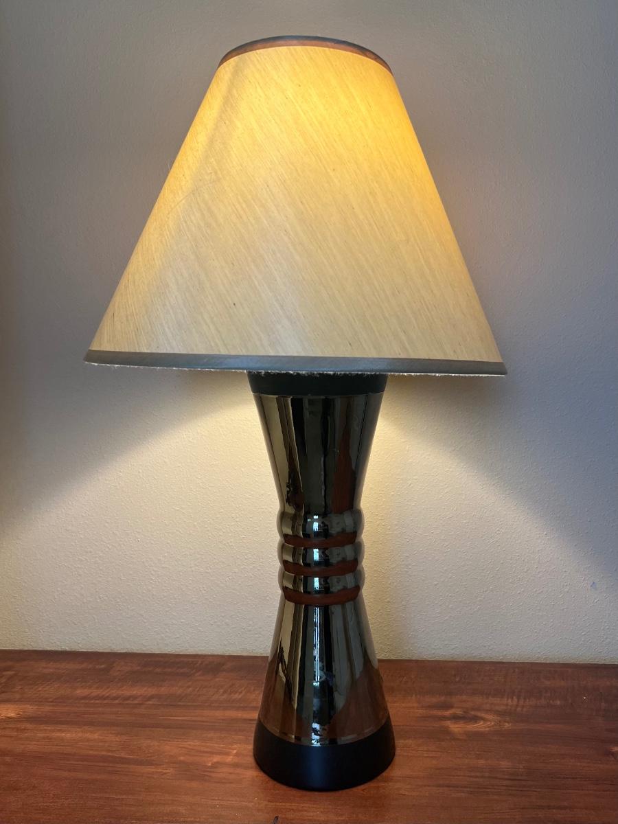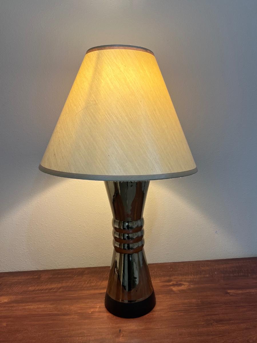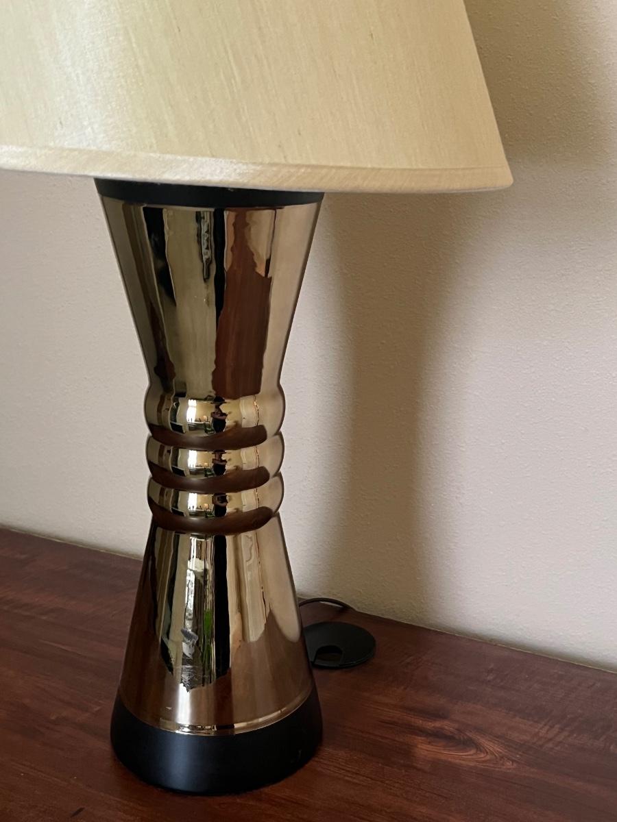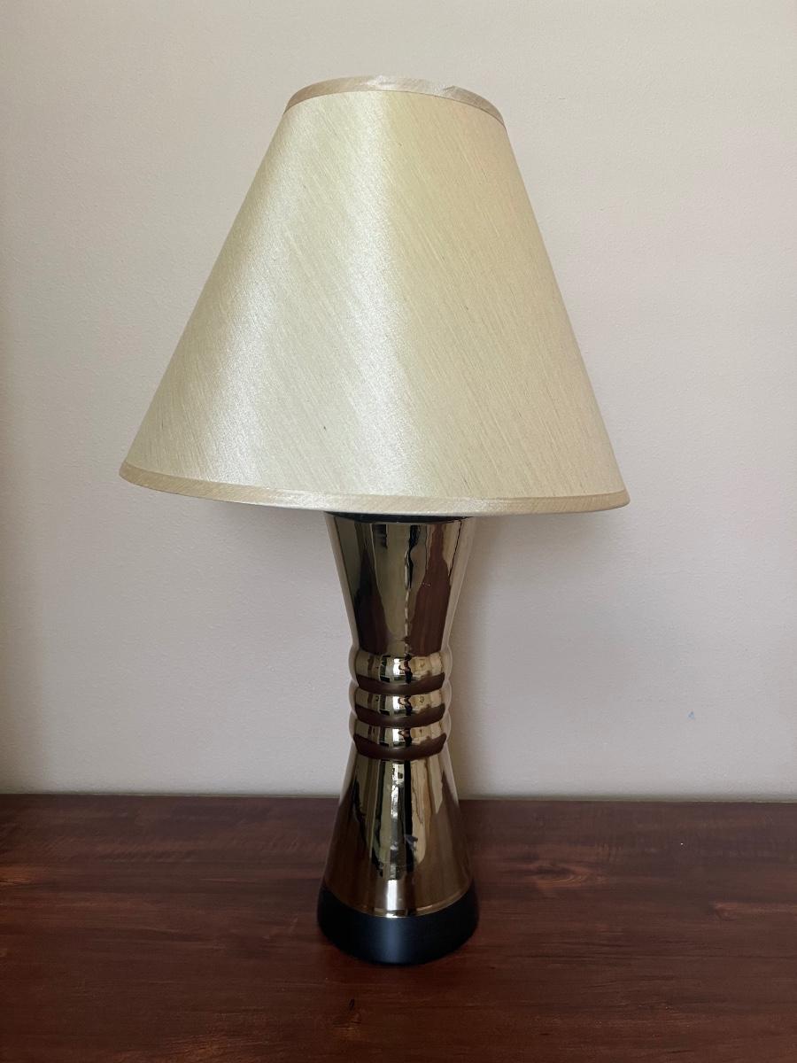 One Gold Chrome base lamp with shade. Measures 30 inches tall