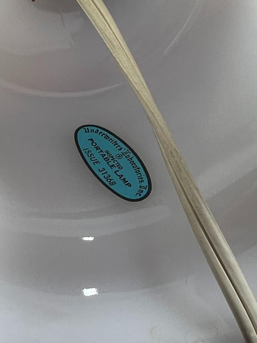 Underwriters Laboratories Portable Ceramic Glass White Desktop Nightstand Lamp, there is no significant damage to the lamp and is in good usable condition. Check pictures for more details and for sizing.