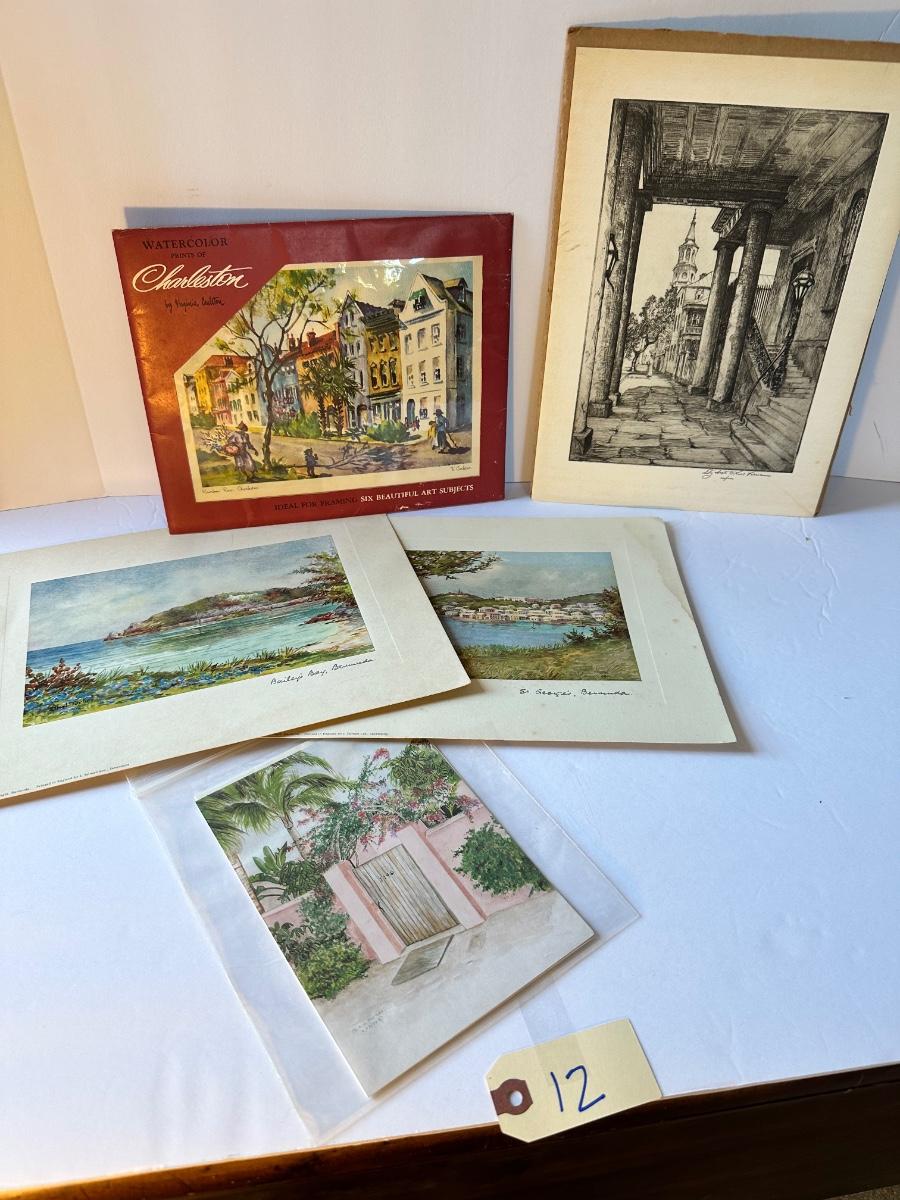 Unframed Art By Elizabeth O'Neal Verner, Water Color Prints of Charleston by Virginia Carleton, Charleston Note Cards As Pictured