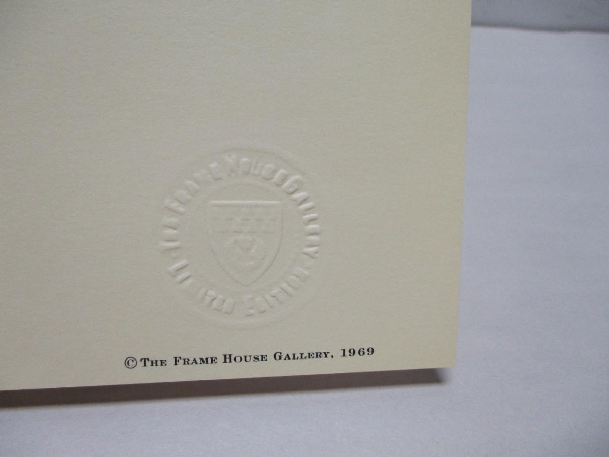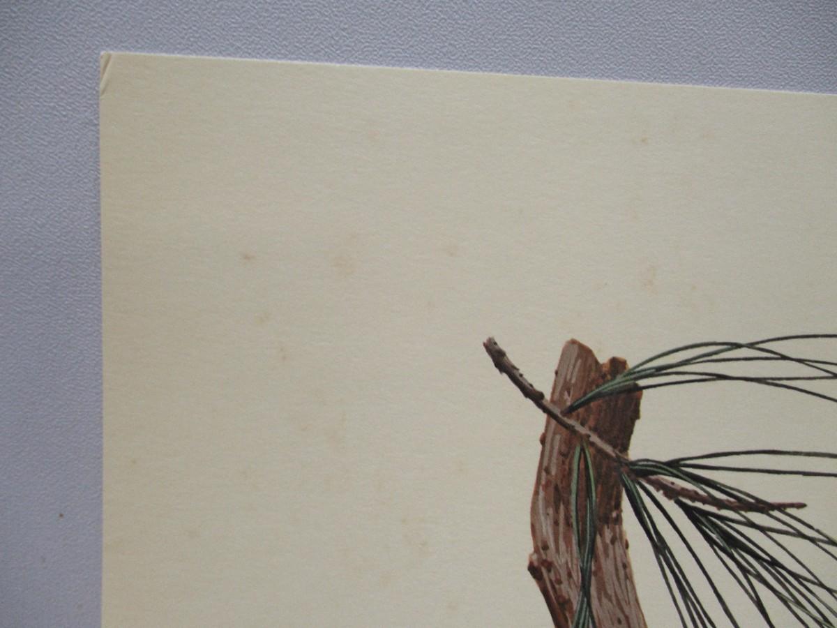 A small owl on an evergreen branch - Lithograph on paper - Sight size 16 1/2" h x 12 1/4 w