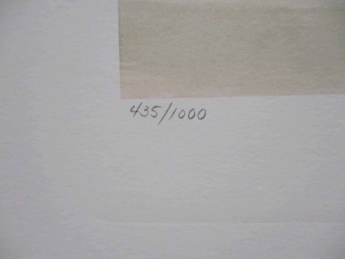 Pair of ducks flying to the left. River and steam boat in the background - Offset lithograph on paper - sight size 18"w x 23" h