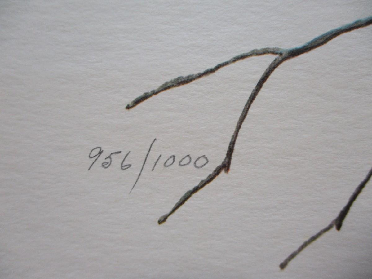 Pair of ducks flying to the left. Branch with fall leaves in background. Offset lithograph on paper - sight size 16"h x 22"w