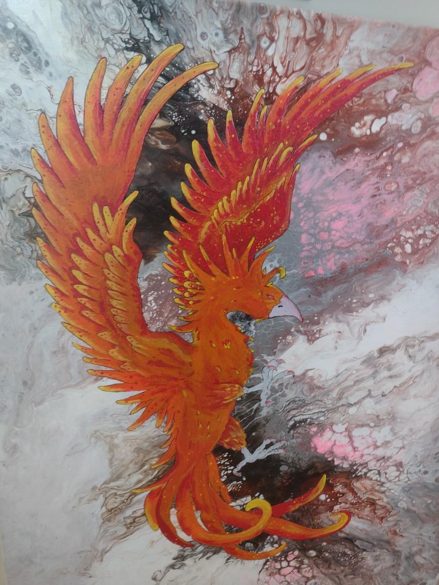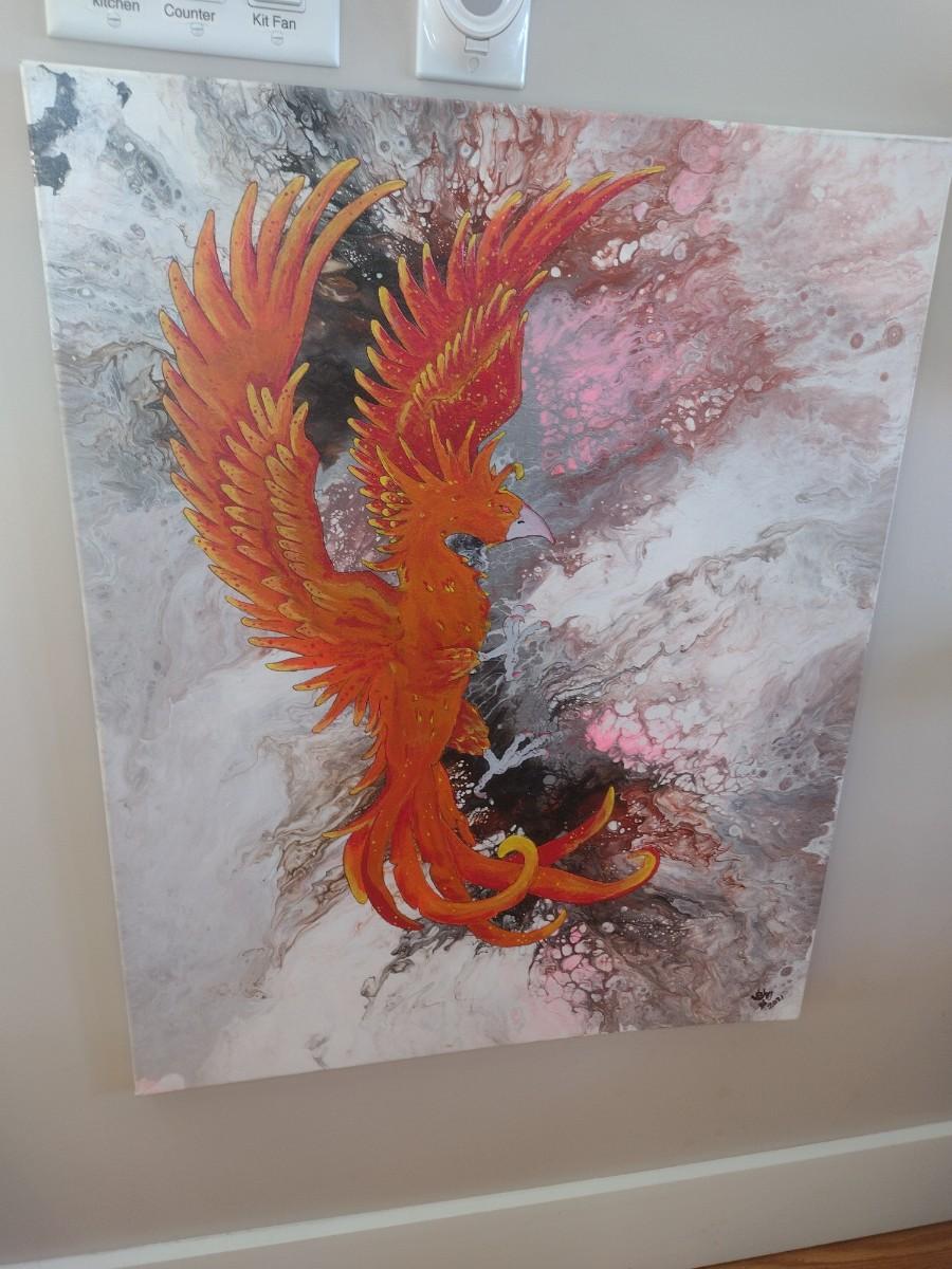 Unframed Original Painting Phoenix by Asheville Artist Jahn Morrison