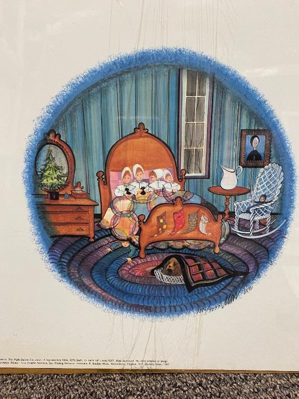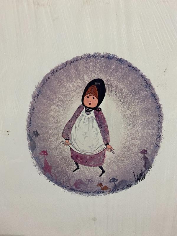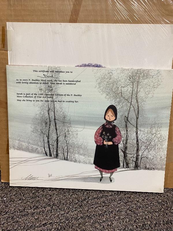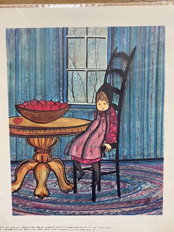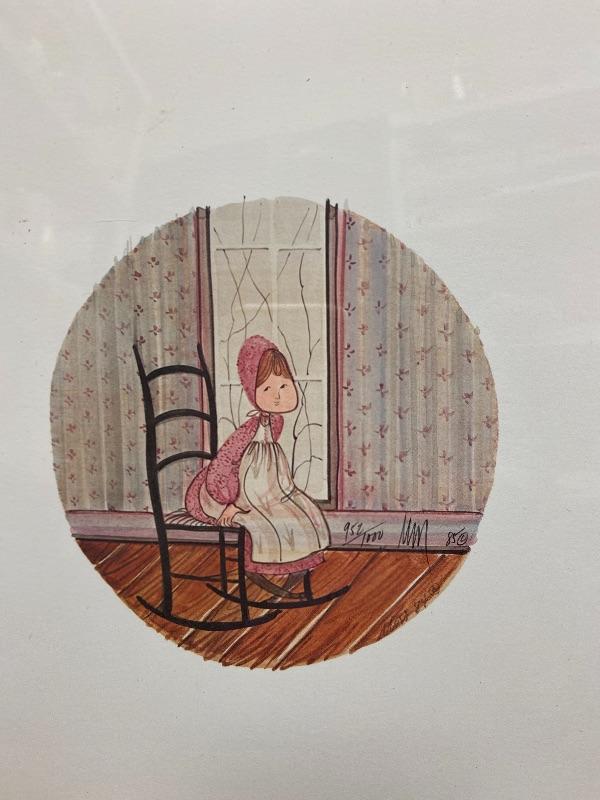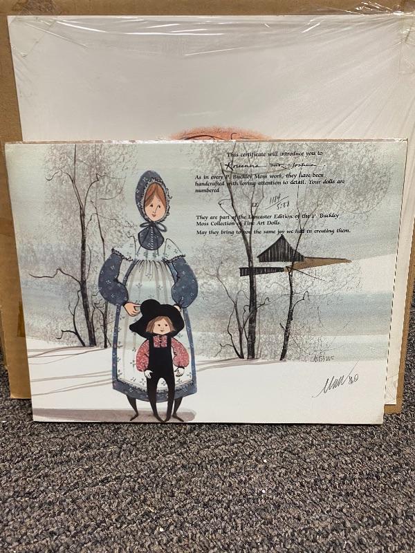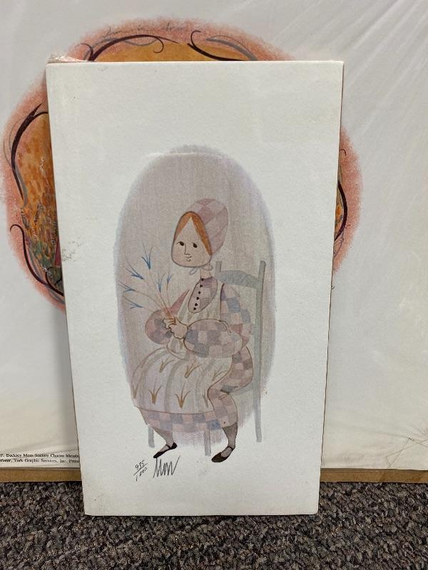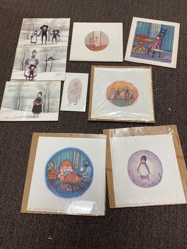 Set of 9 unframed P Buckley Moss prints. All are on cardboard and covered with plastic. Largest print is 12"x12" and the smallest is 4.75"x8.5".