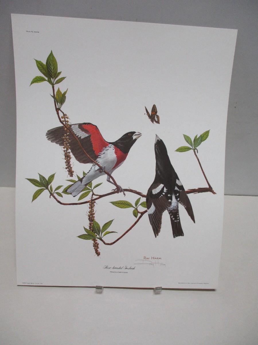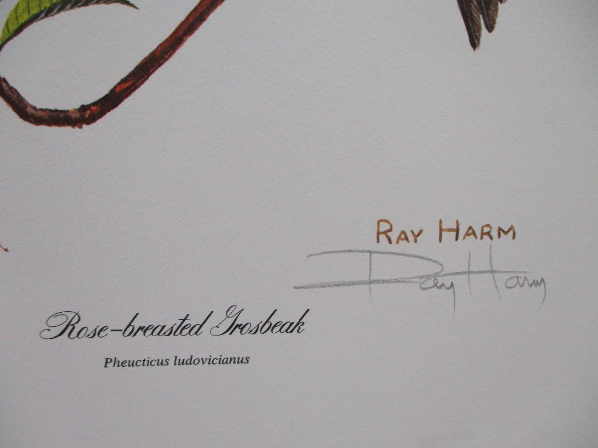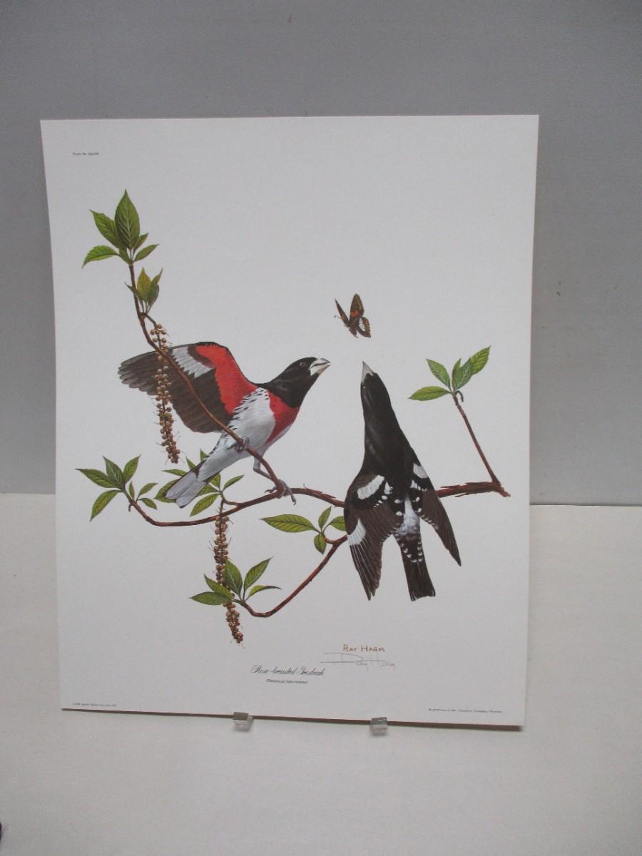 Unframed Ray Harm Signed Print "Rose-breasted Grosbeak"