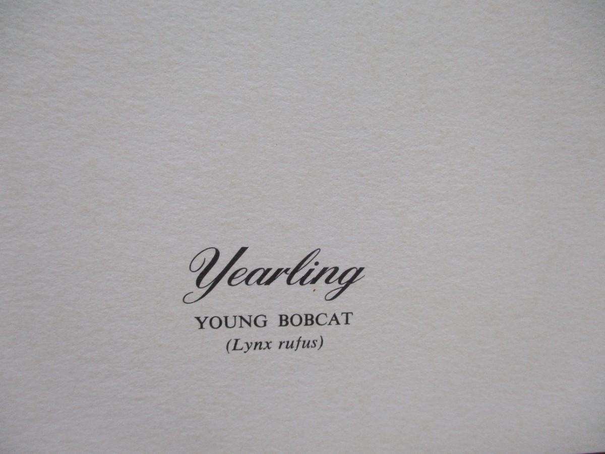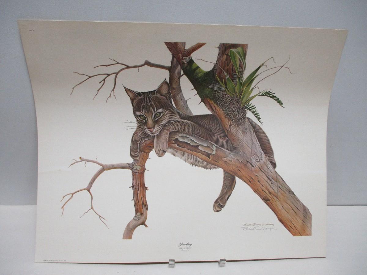 A young bobcat sitting in a tree - Offset Lithograph on paper - sight size 21.65" h x 27.625"w