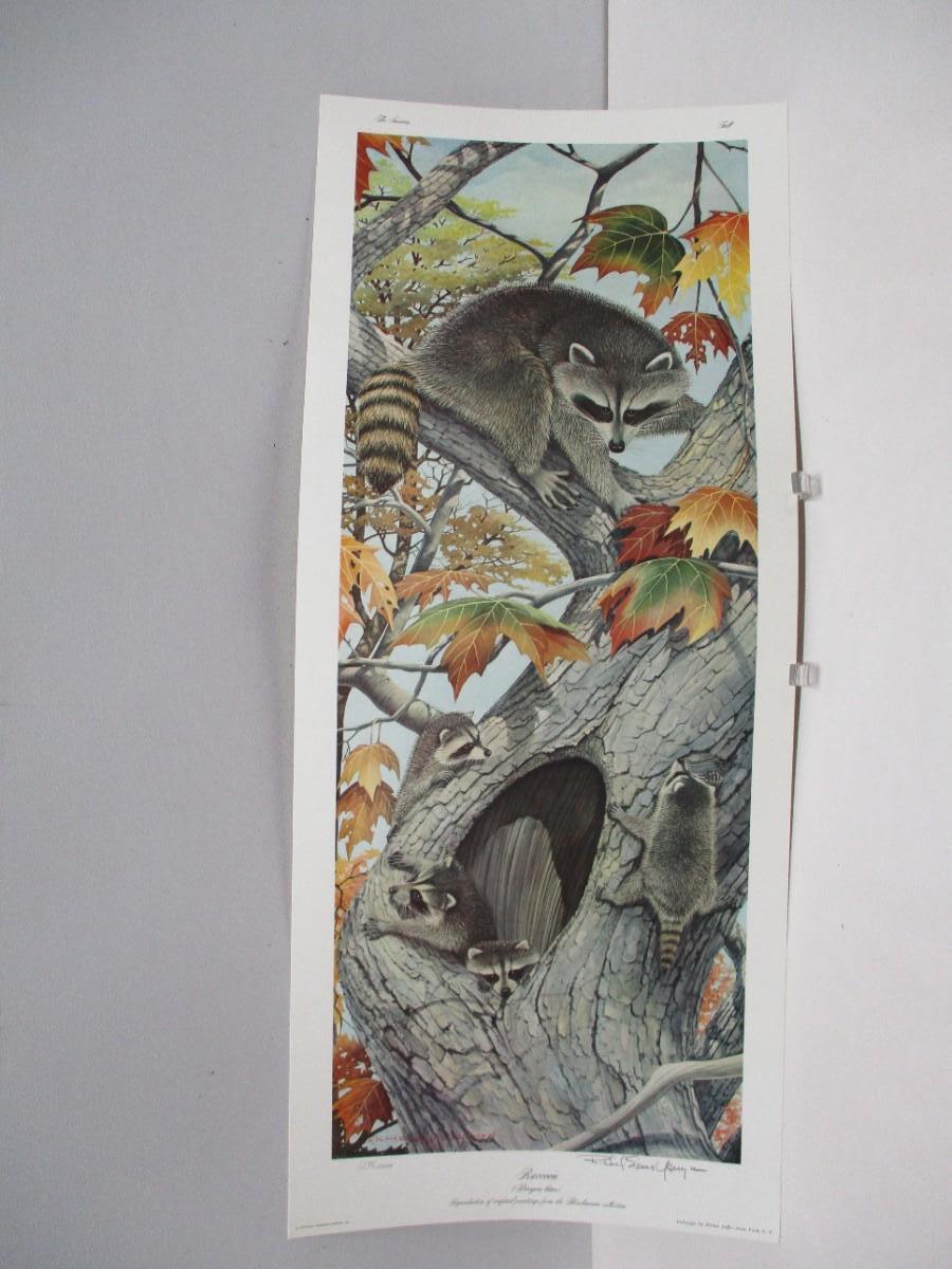 Depicts a family of racoons - Offset Lithograph on paper - sight size 12.25"h x 29"w