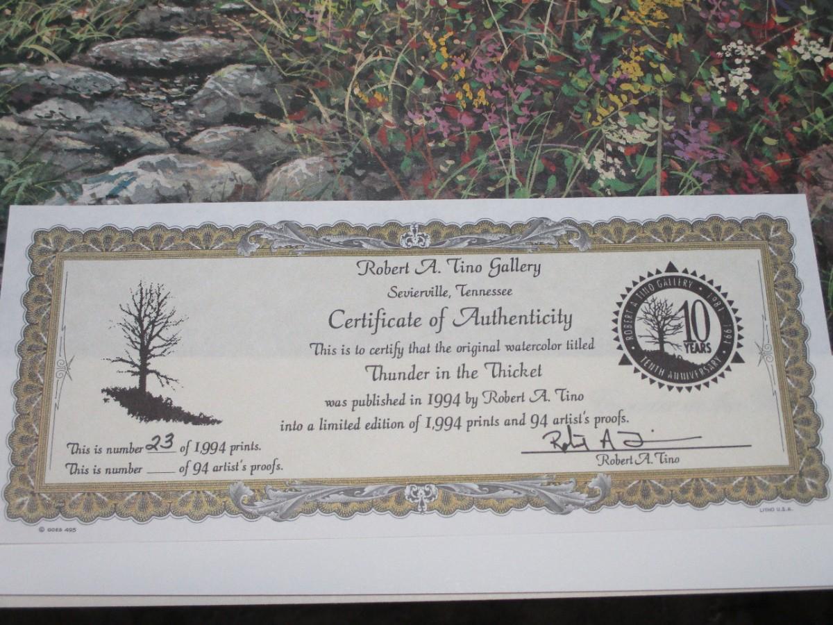 Robert Tino Numbered "Thunder In The Thicket" With COA Unsigned 1994