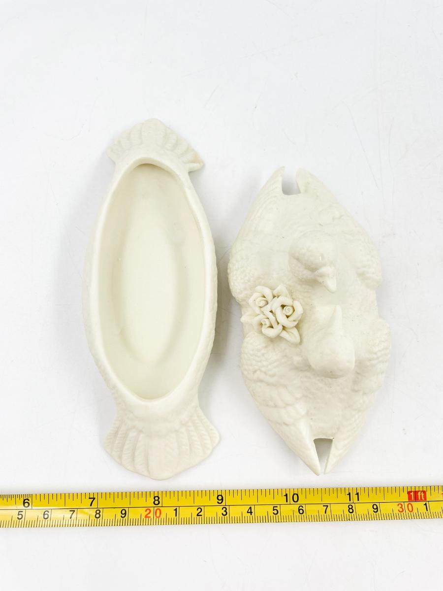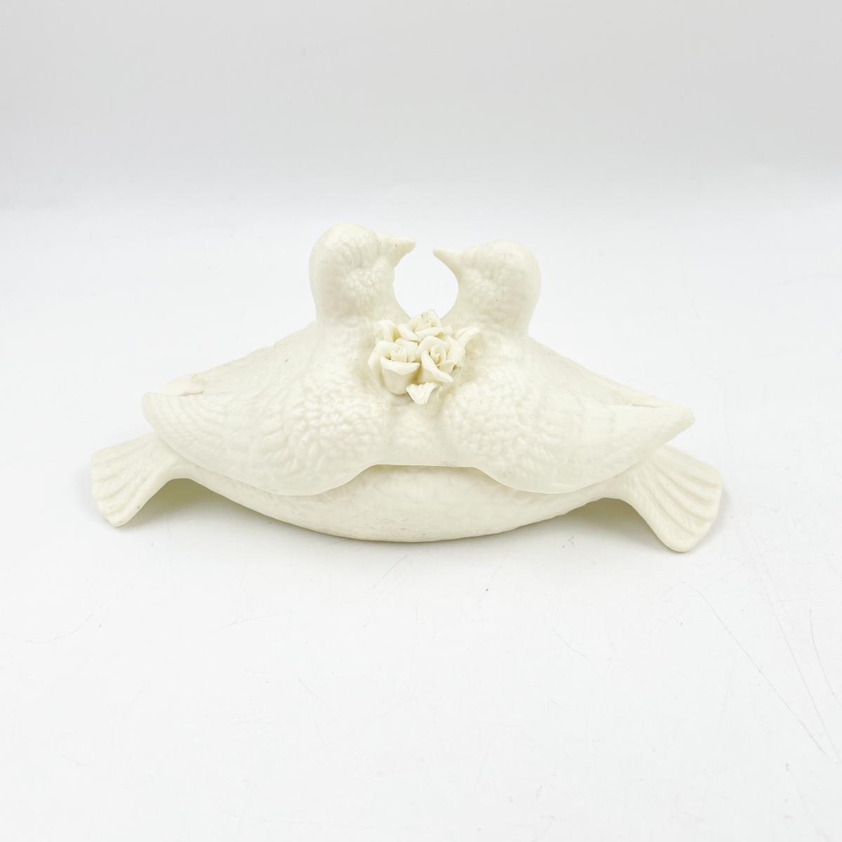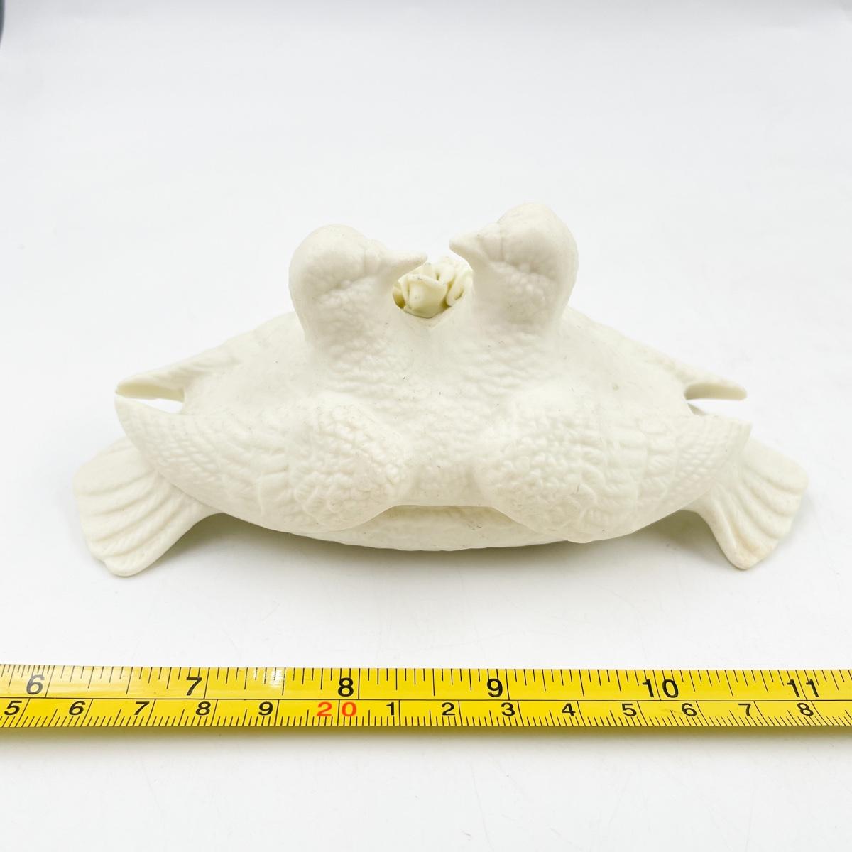 UNGLAZED CERAMIC 6” DOVE LIDDED BOWL FIGURINE
