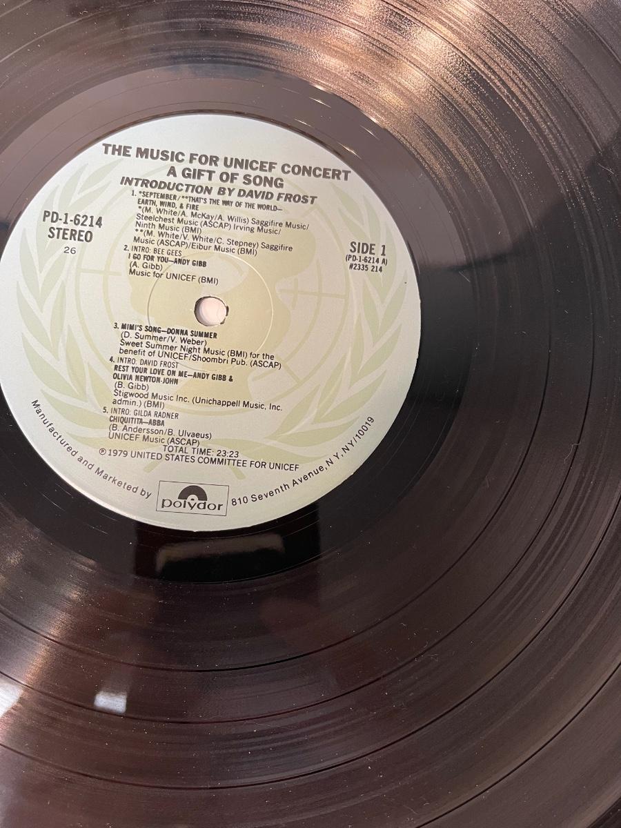 Released in 1979. Album was part of the fundraising effort for the United Nations "Year of the Child". In very good condition. Featured artists included ABBA, The Bee Gees, John Denver, Olivia Newton-John, Rod Stewart, and Donna Summer.
