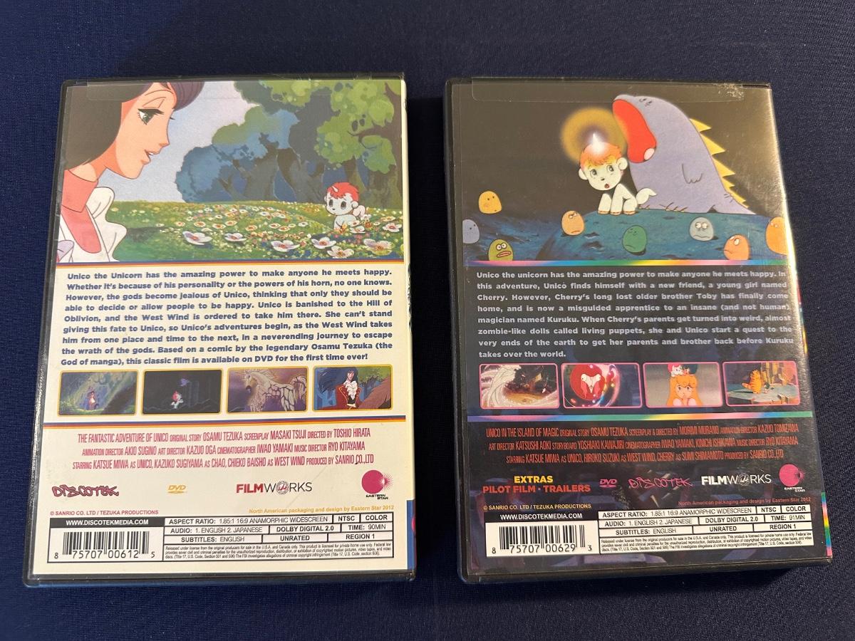UNICO IN THE ISLAND OF MAGIC, THE FANTASIC ADVENTURES OF UNICO DVDS AS PICTURED