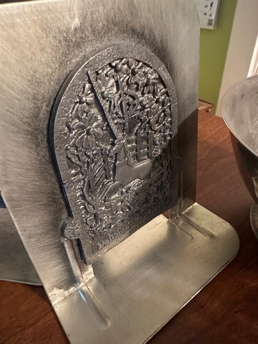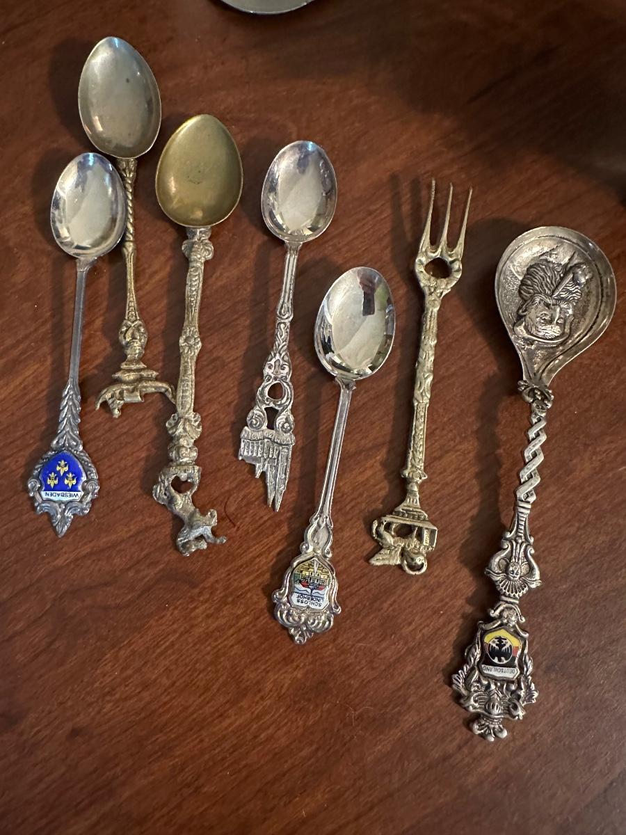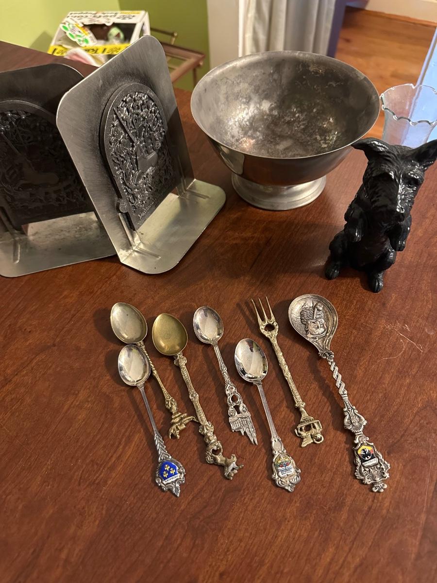 UNICORN BOOKENDS, COLLECTOR SPOONS, BOWL AND TERRIER DOG FIGURE