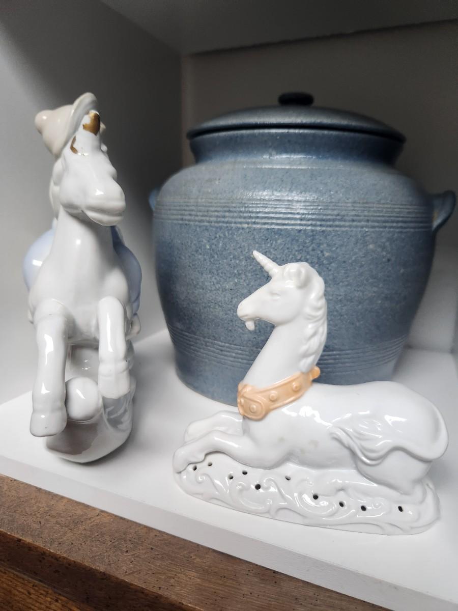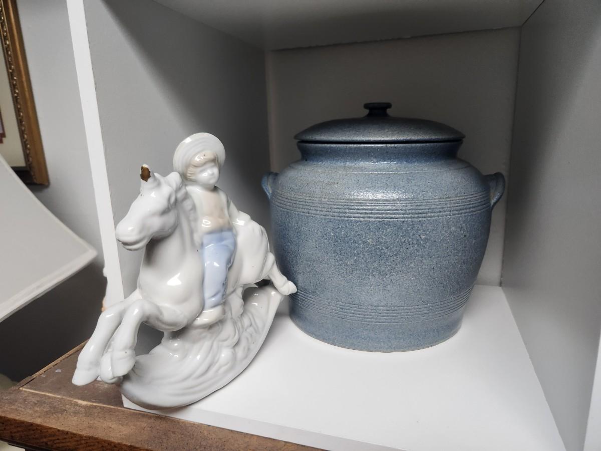 Unicorn, boy and horse, blue jar